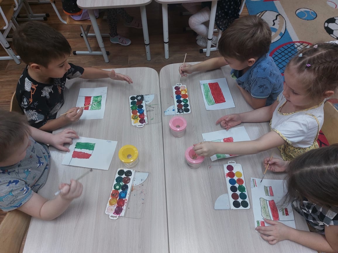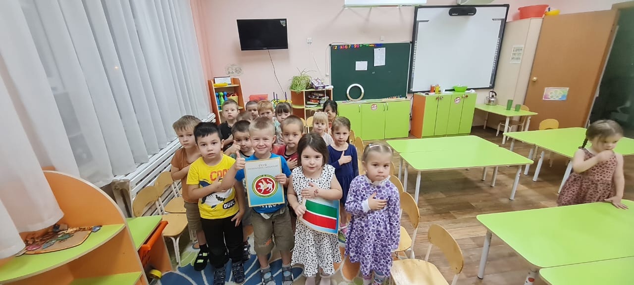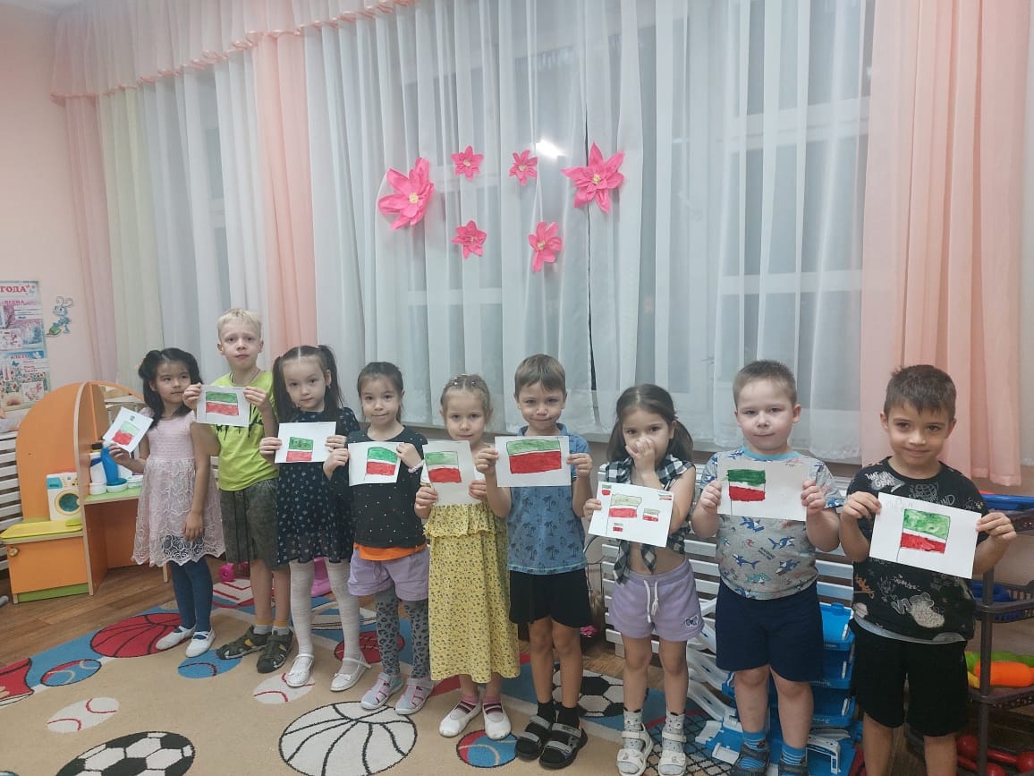 Во всех группах нашего детского сада были проведены тематические беседы «Один флаг – один Татарстан», выполнена разнообразная продуктивная деятельность «Флаг нашей Республики».