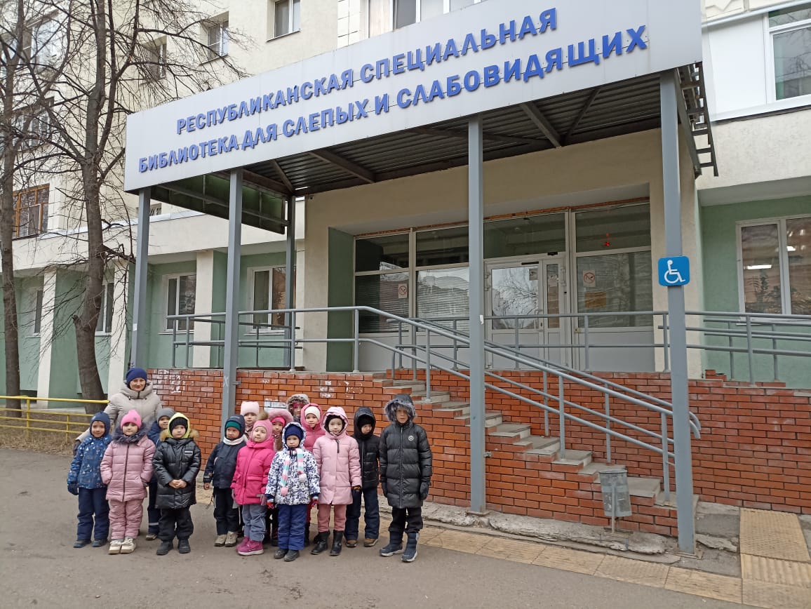 Воспитанники подготовительной группы № 4, вместе с воспитателем , сотрудниками детского сада и с родителями, посетили Республиканскую специальную библиотеку для слепых и слабовидящих, где познакомились с шрифтом Брайля. Особое впечатление на ребят произвела выставка тактильных книг. А также звучащие книги, которые рассказывают свои истории.