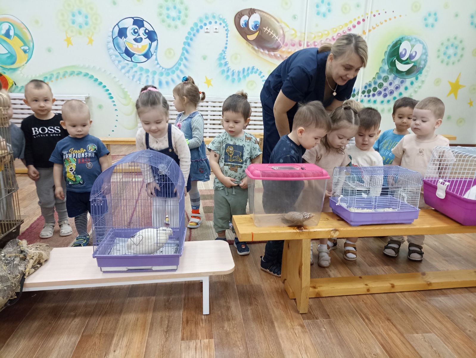 Ребятам рассказали про разных домашних животных(морская свинка, хомяки, шиншила и др) , как они живут , чем питаются и в чем их особенность.Ребята слушали внимательно и даже задавали вопросы.