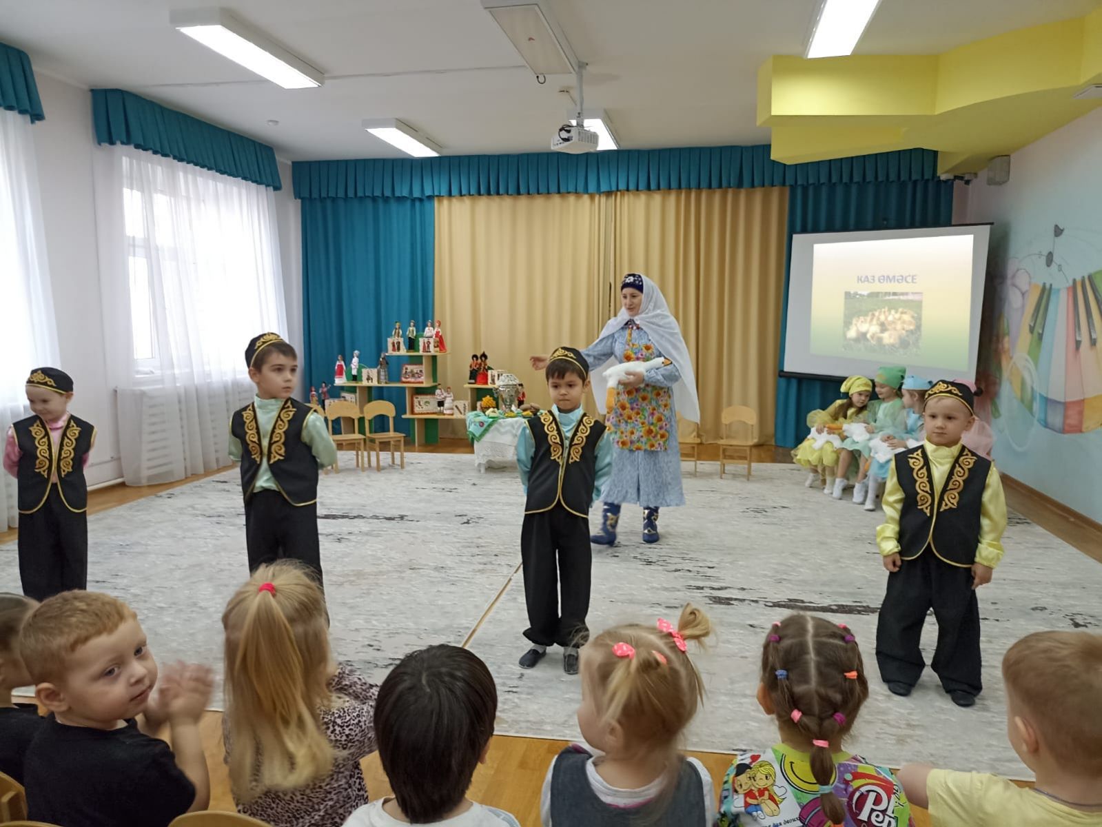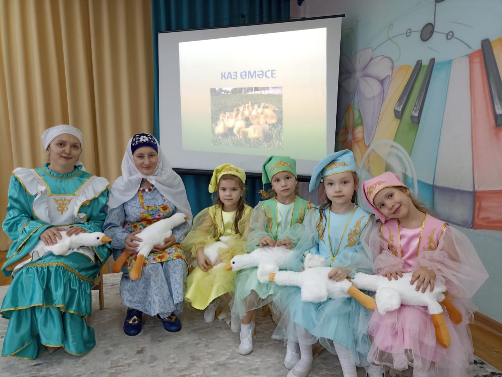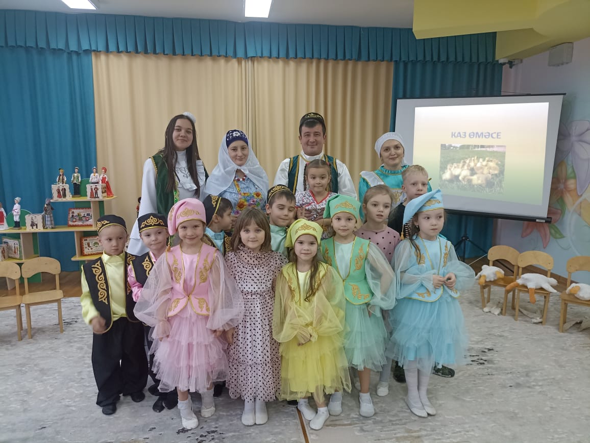 «Каз өмәсе»— это гусиное перо или праздник гуся. Ребята пришли празднично и красиво одетыми, с хорошим и весёлым настроением. В гости их позвала эби, дети ей помогли в работе, а заодно и повеселились. Дети общались, пели песни, играли в игры, танцевали. «Каз өмәсе» показывает сплоченность и взаимовыручку народа, он объединяет людей. Этот праздник не только помощь в деле ощипывания гусей и обработке мяса – это школа домоводства, хороших традиций, бережно хранимых с незапамятных времен. Праздник получился познавательным, радостным, полным улыбок и приятных впечатлений. Эти традиции учат трудолюбию, умению радоваться жизни.