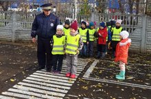 Безопасность ради жизни 17.10.2019 Инспектор ГИБДД провел с детьми старшего дошкольного возраста мероприятие по закреплению знаний правил безопасного поведения на дорогах и представлений о дорожно-транспортной среде.Все дети получили в подарок световозвращающие подвески и книги " Знай,помни,соблюдай"..