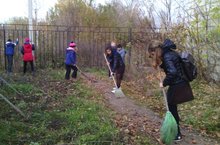 В течении недели учащиеся приводят в порядок территорию школы. Каждый класс выходит на свой участок.