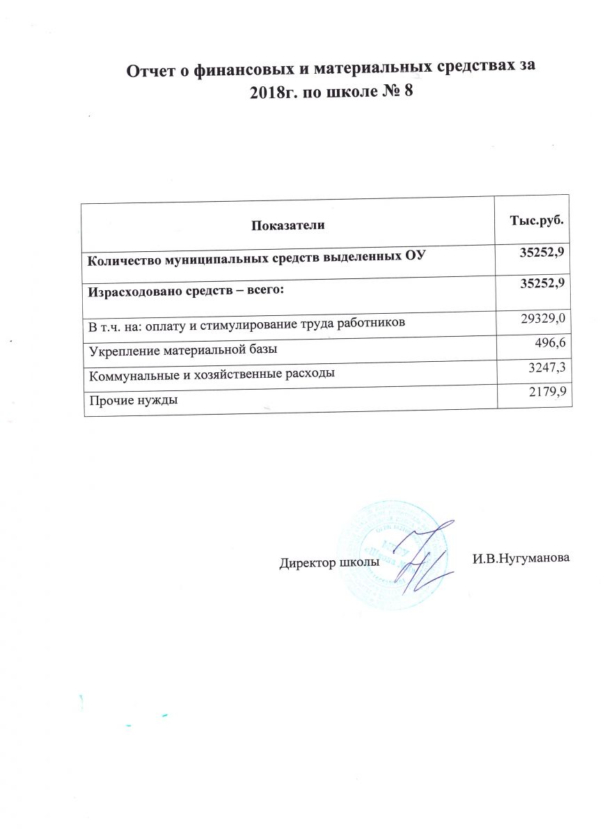 Информация о поступлении и расходовании финансовых средств за 2018 год