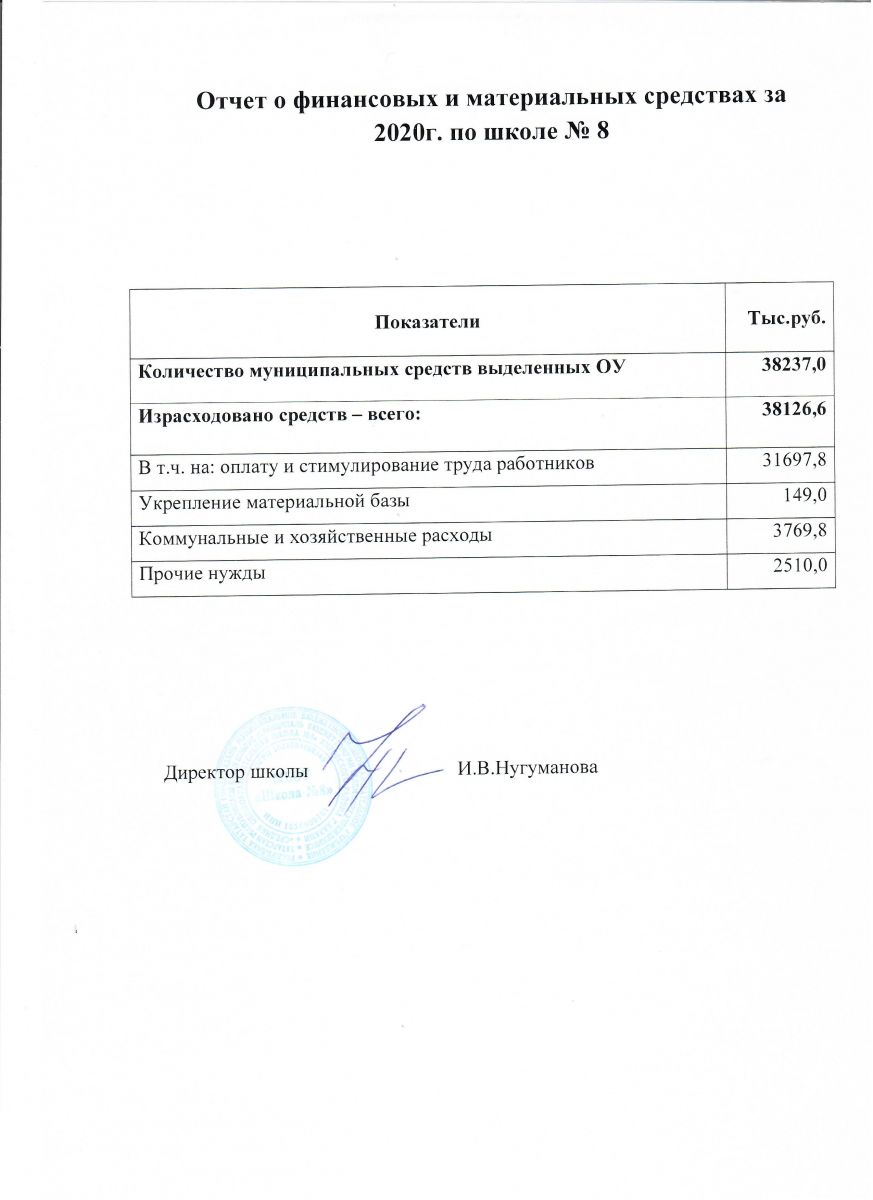 Информация о поступлении и расходовании финансовых средств за 2020 год