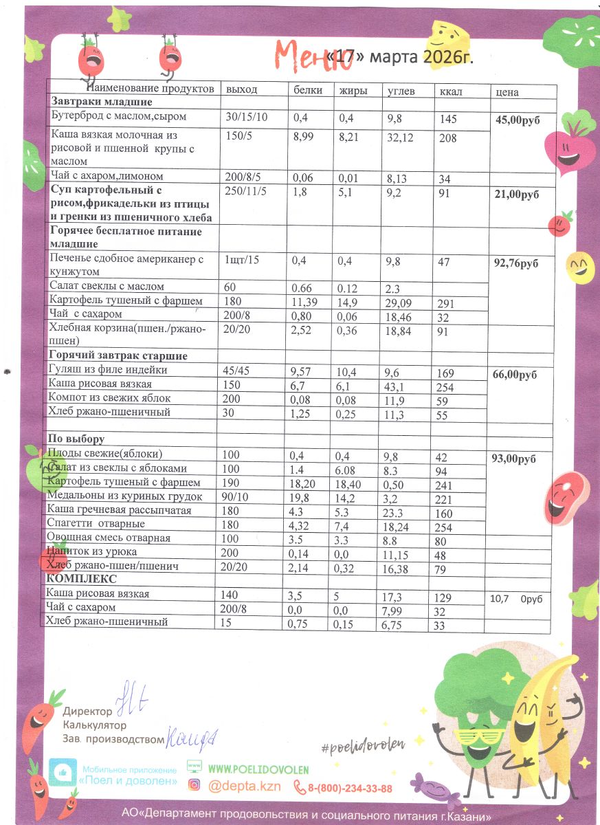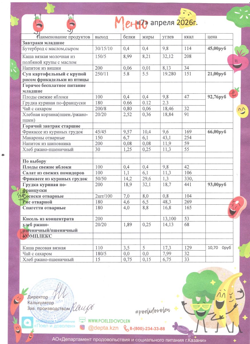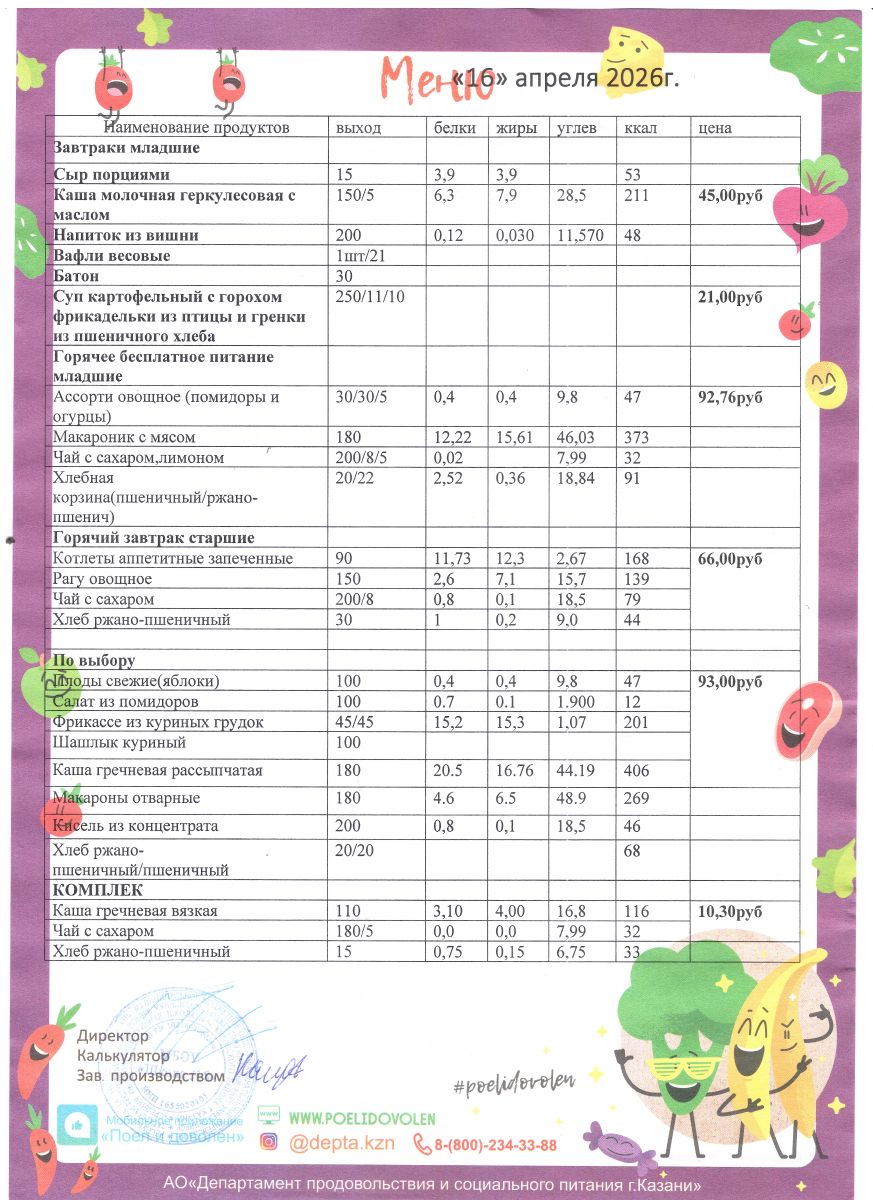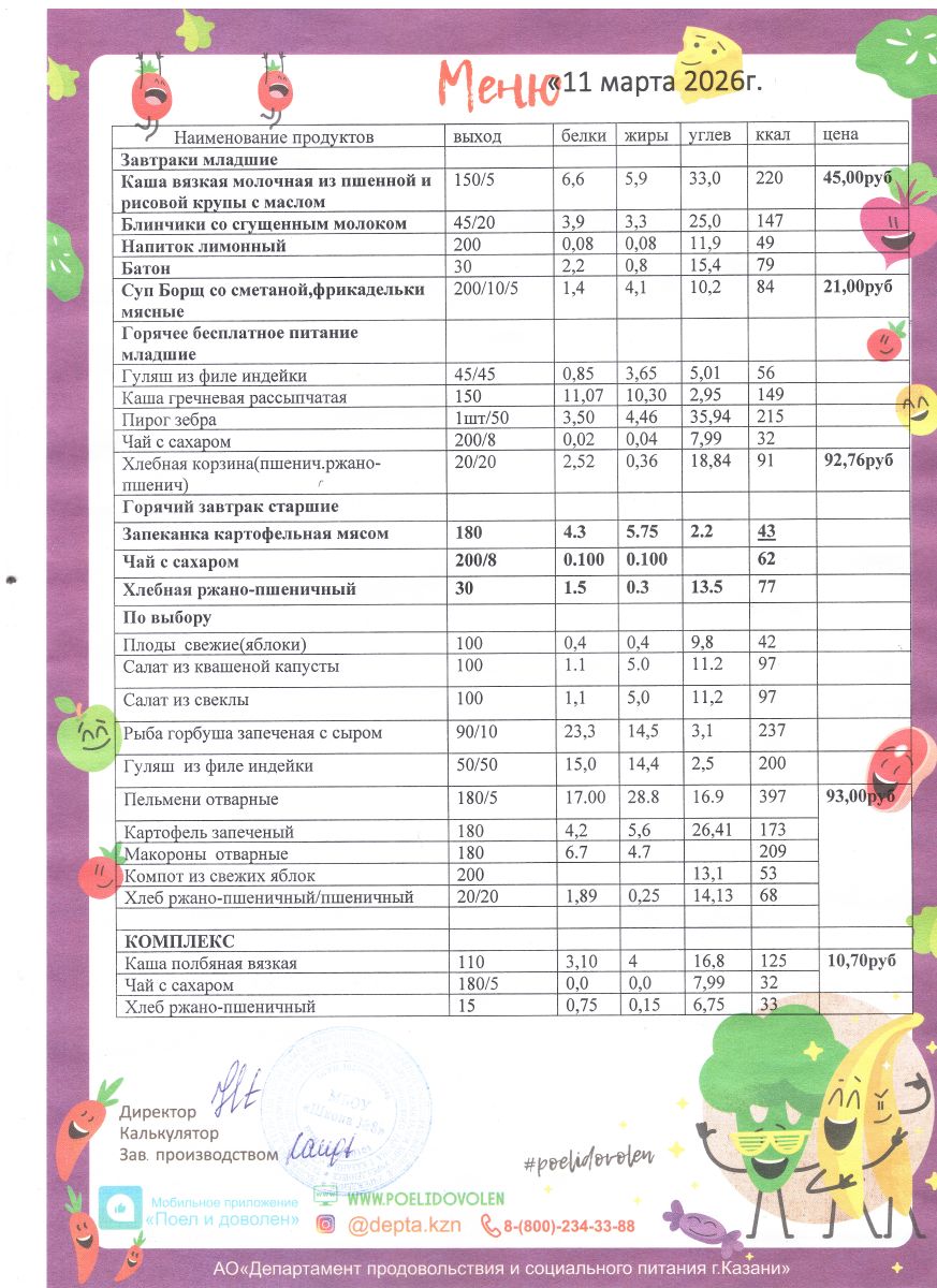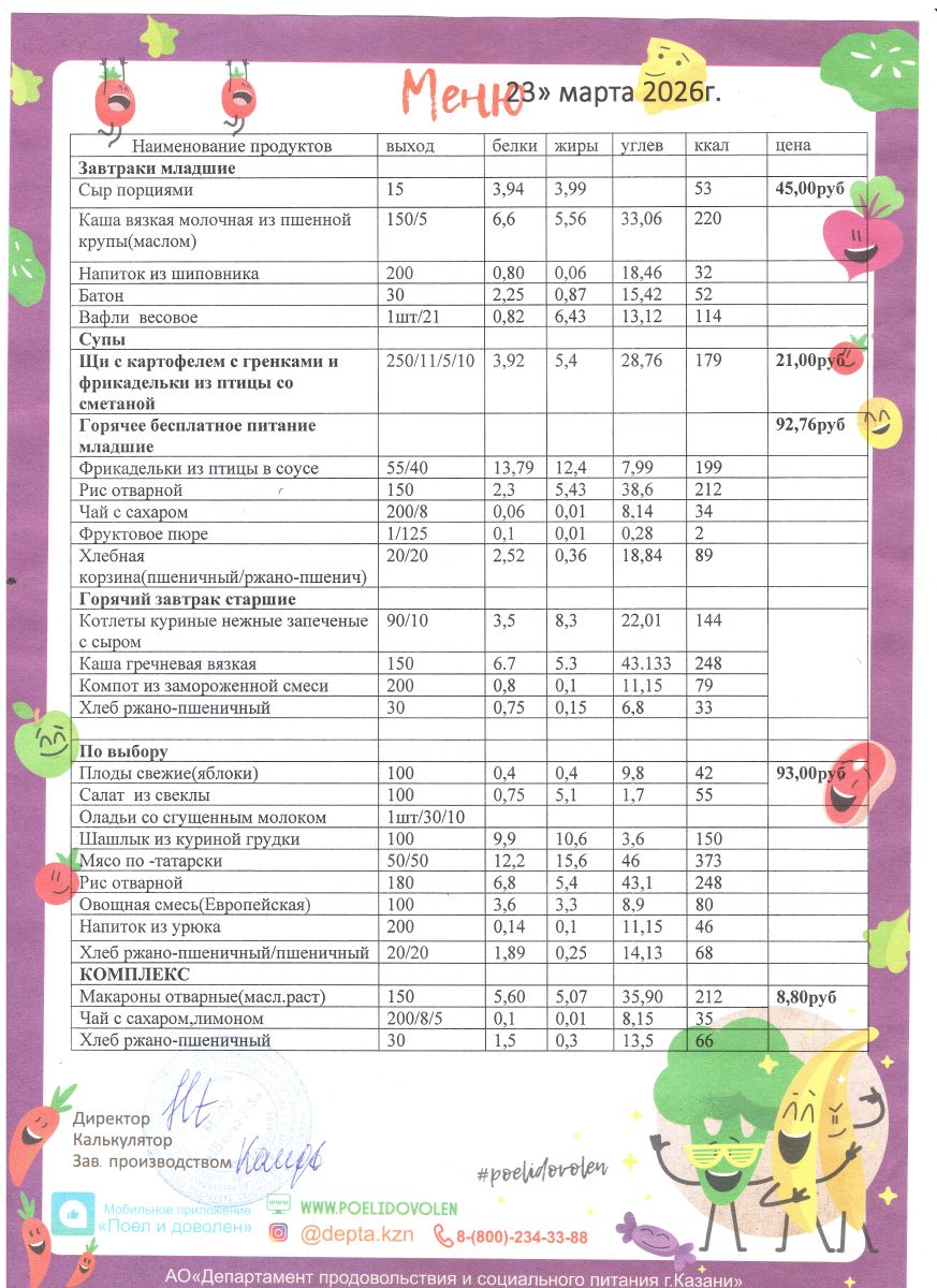 Меню 1 - 11 классы на 2023 - 2024 учебный год