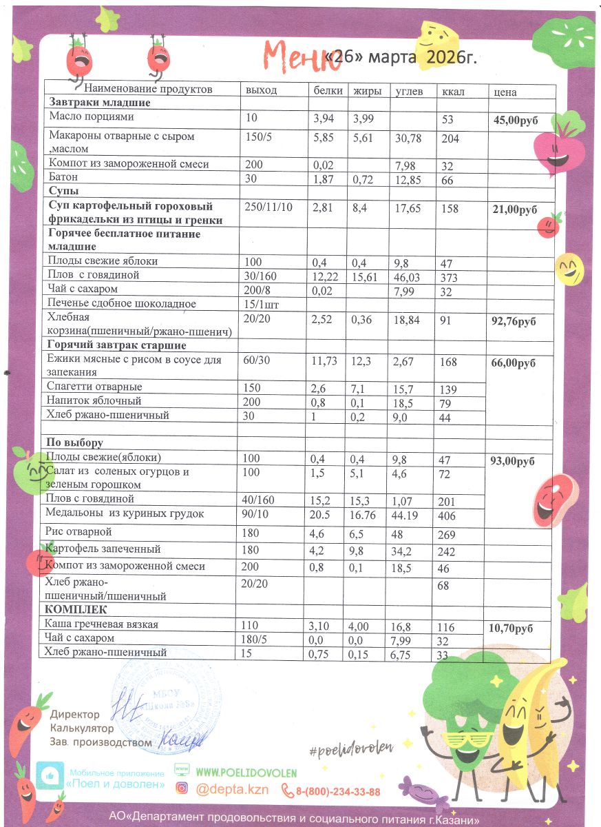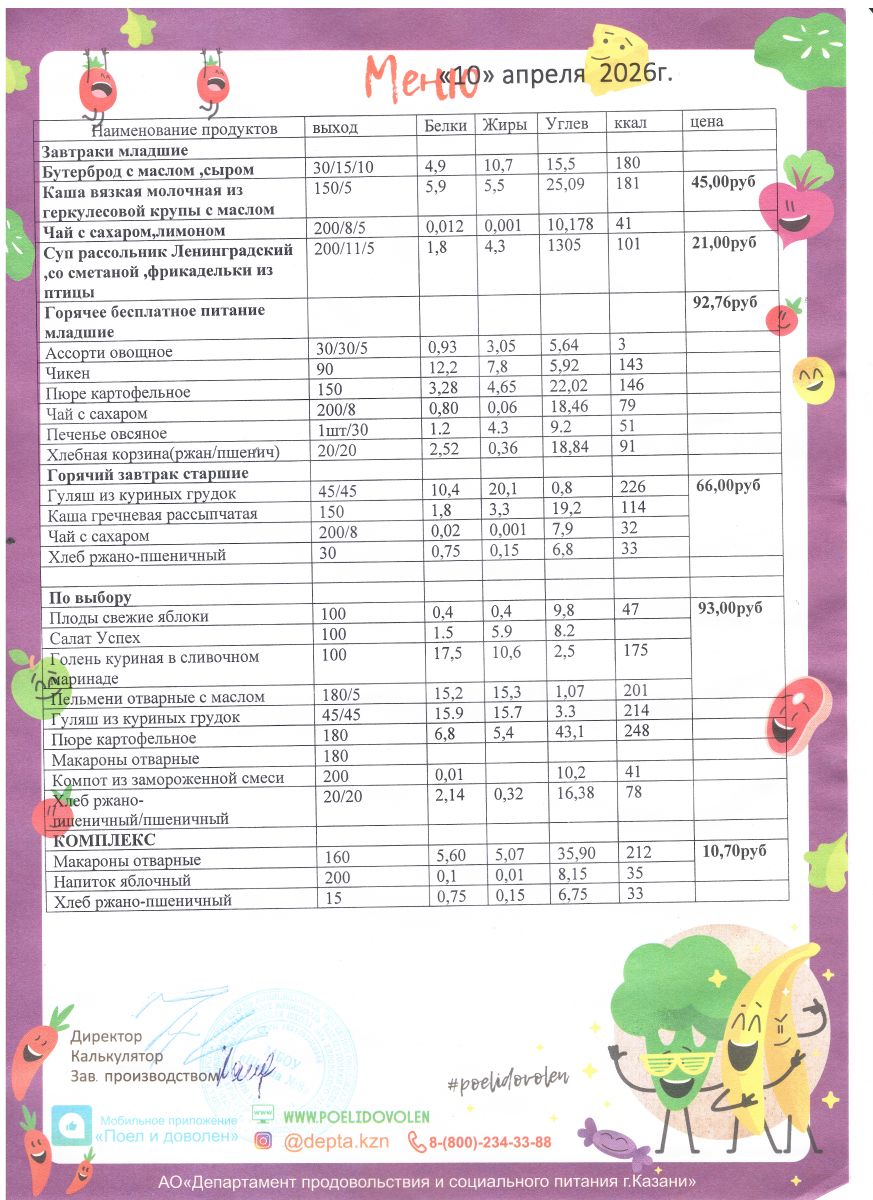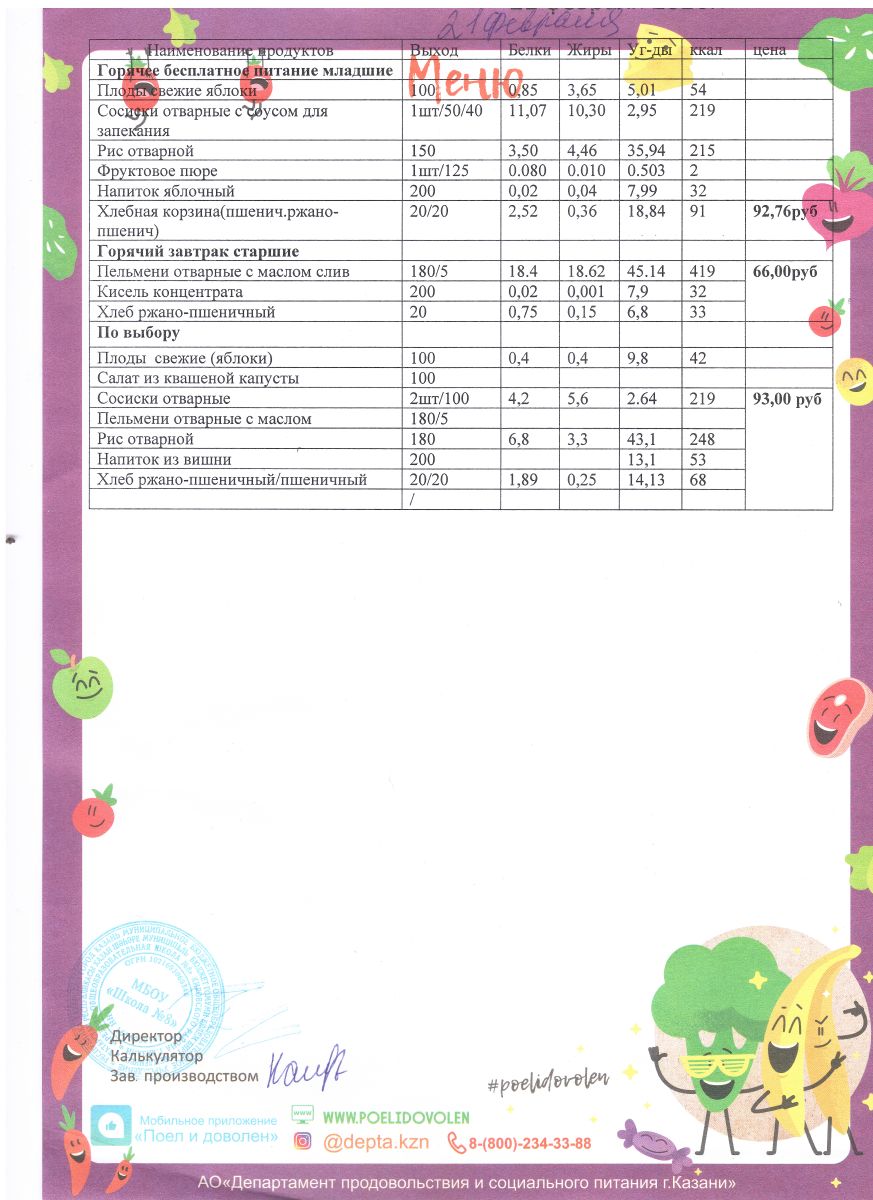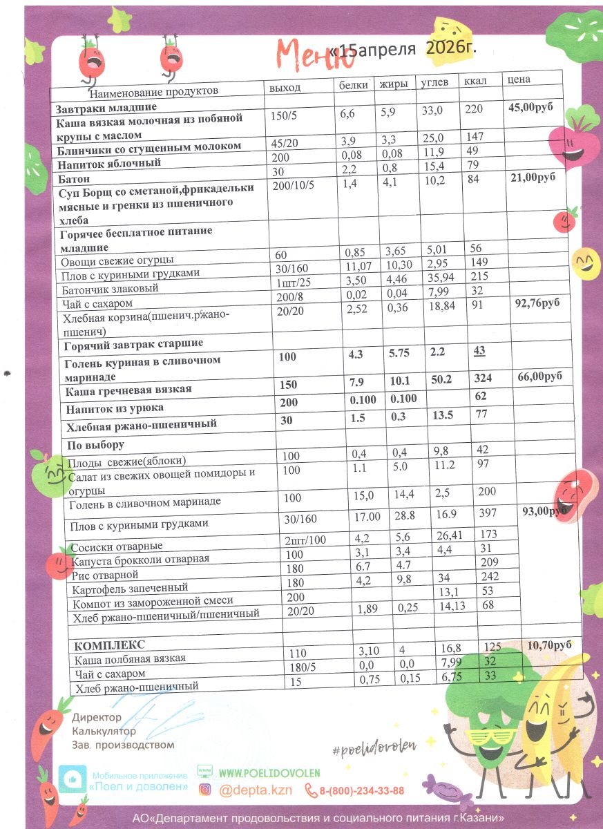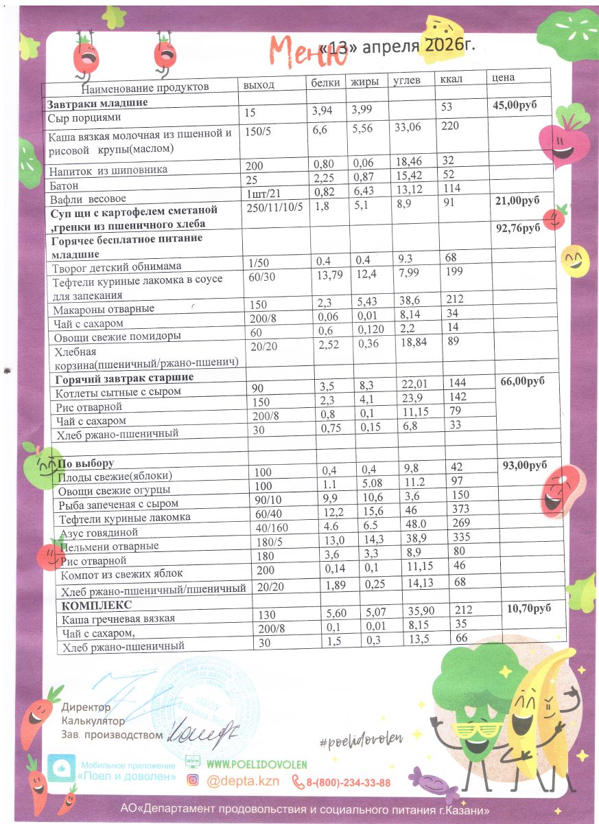 Меню 1 - 11 классы на 2023 - 2024 учебный год