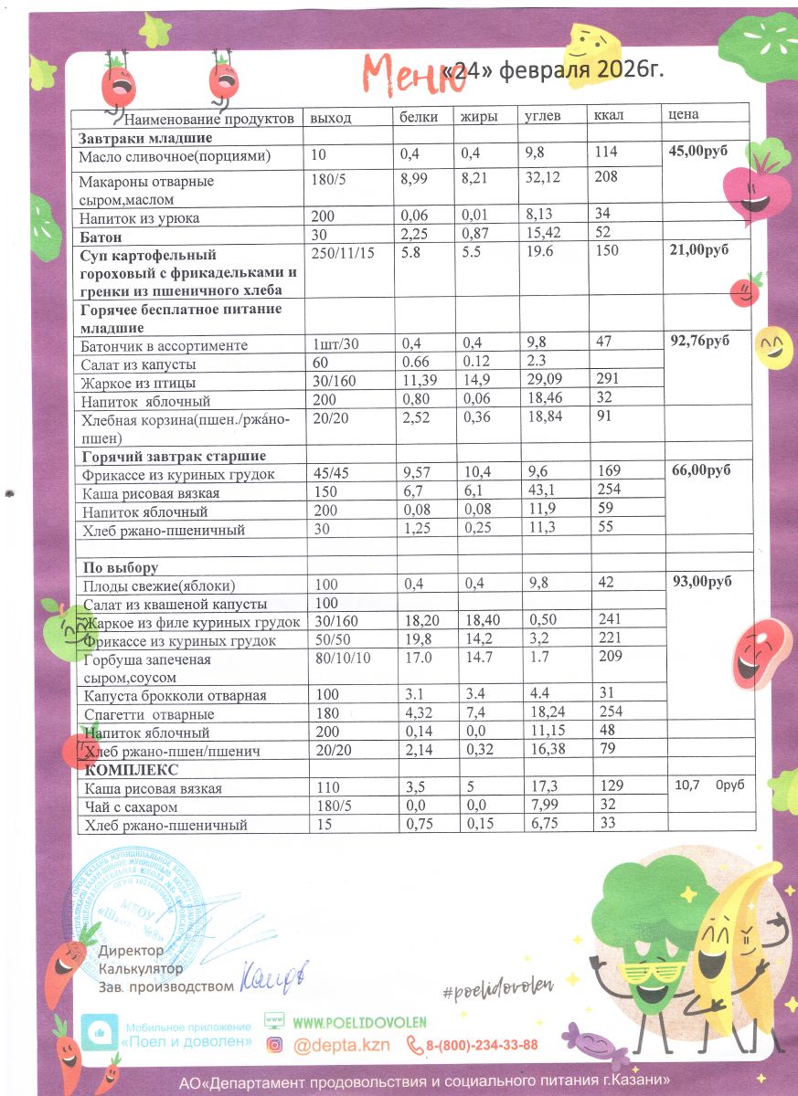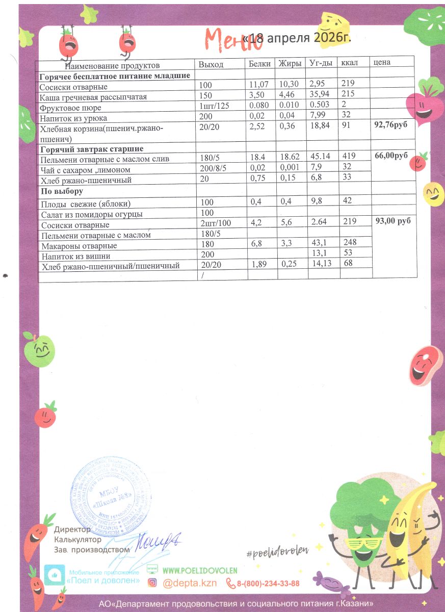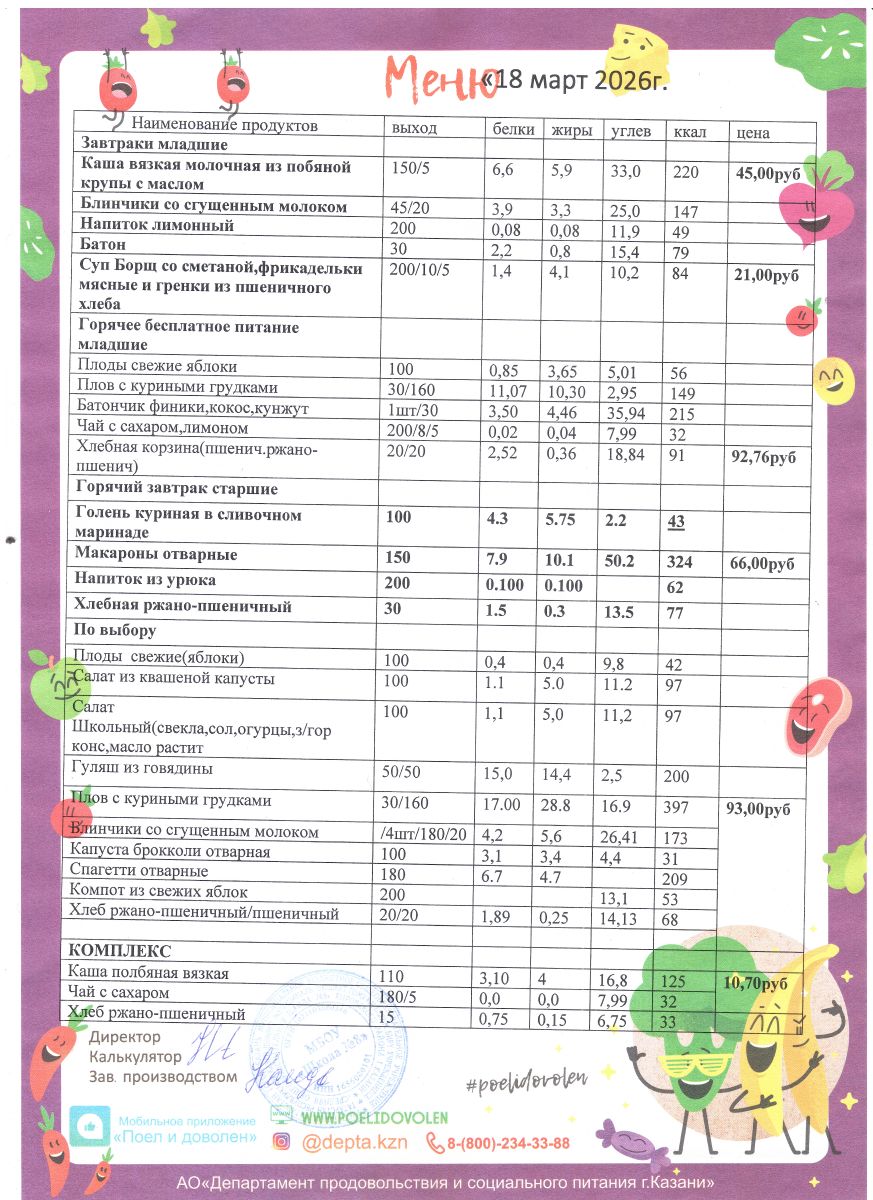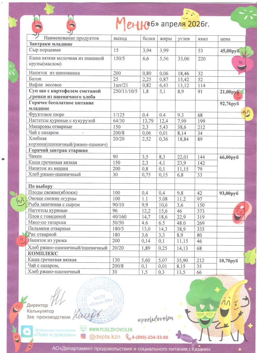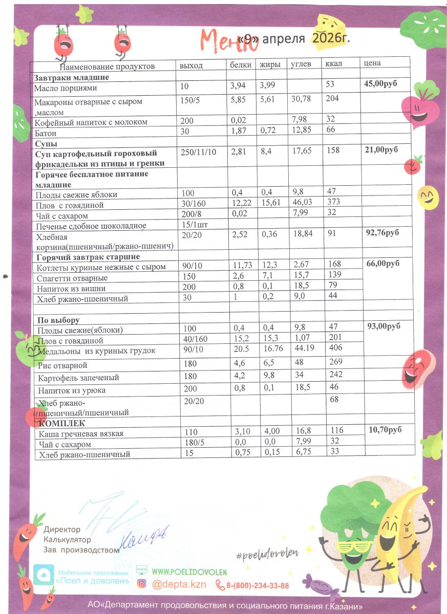 Меню 1 - 11 классы на 2023 - 2024 учебный год