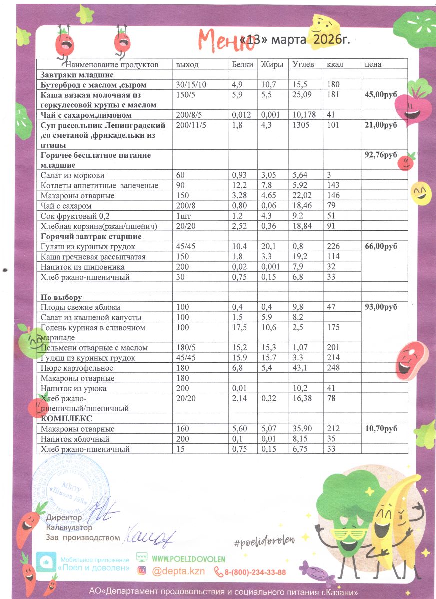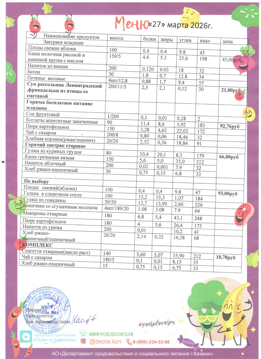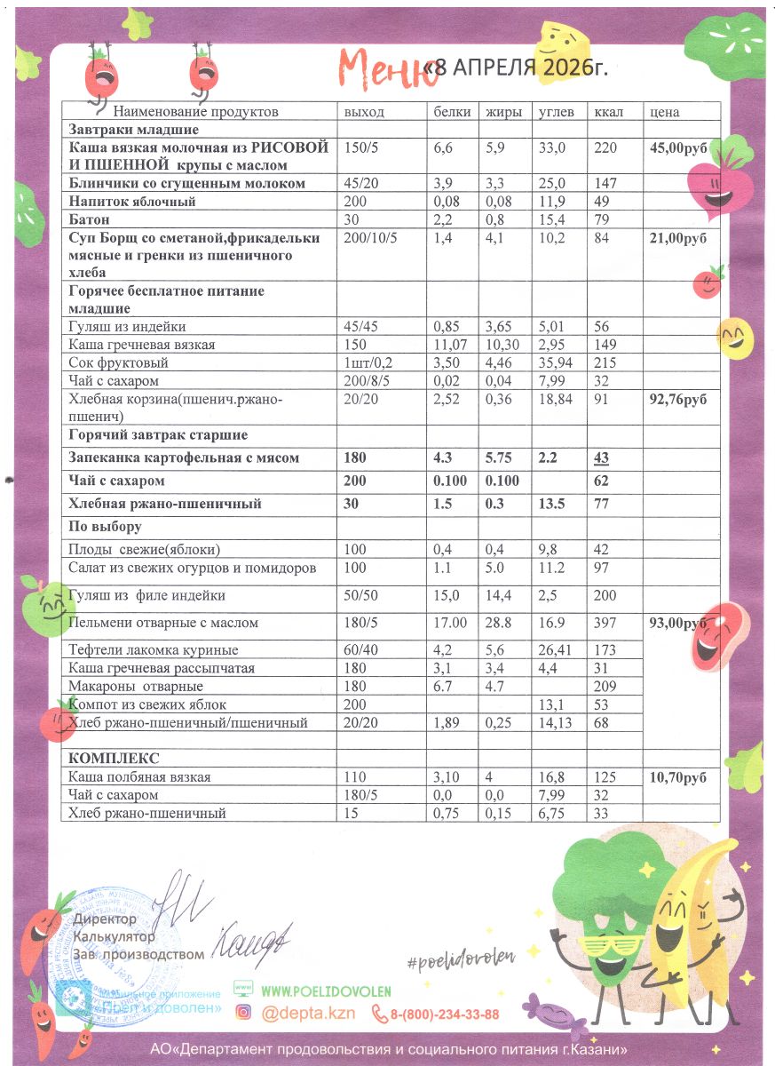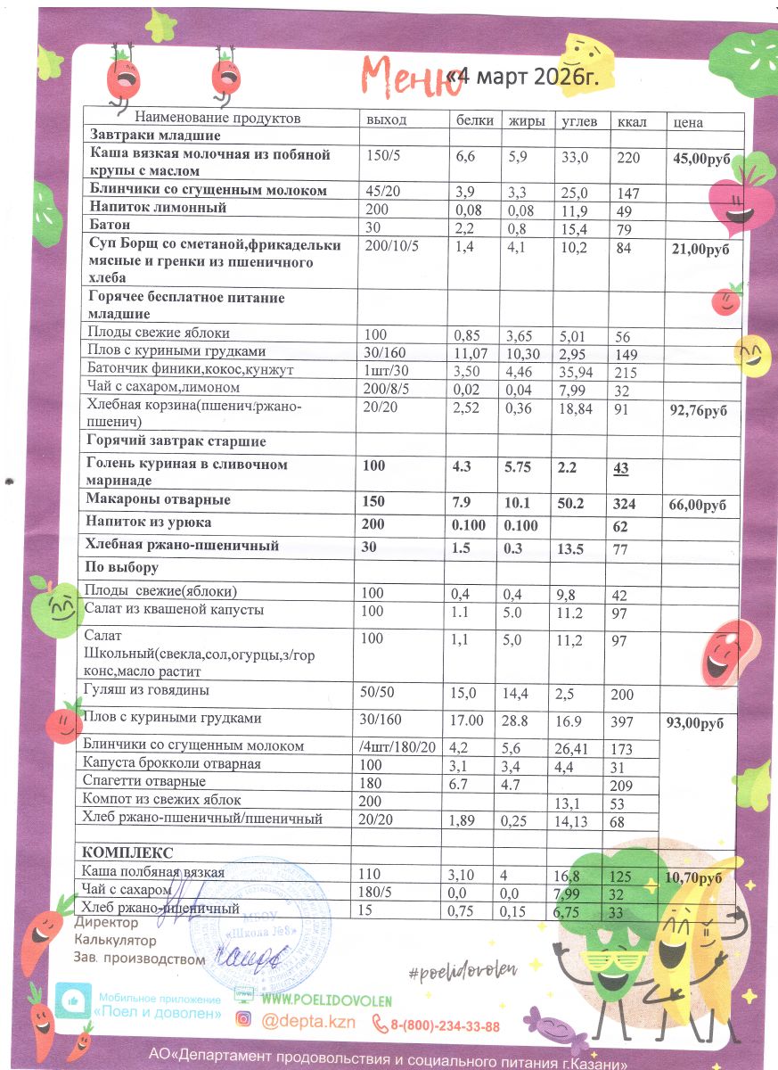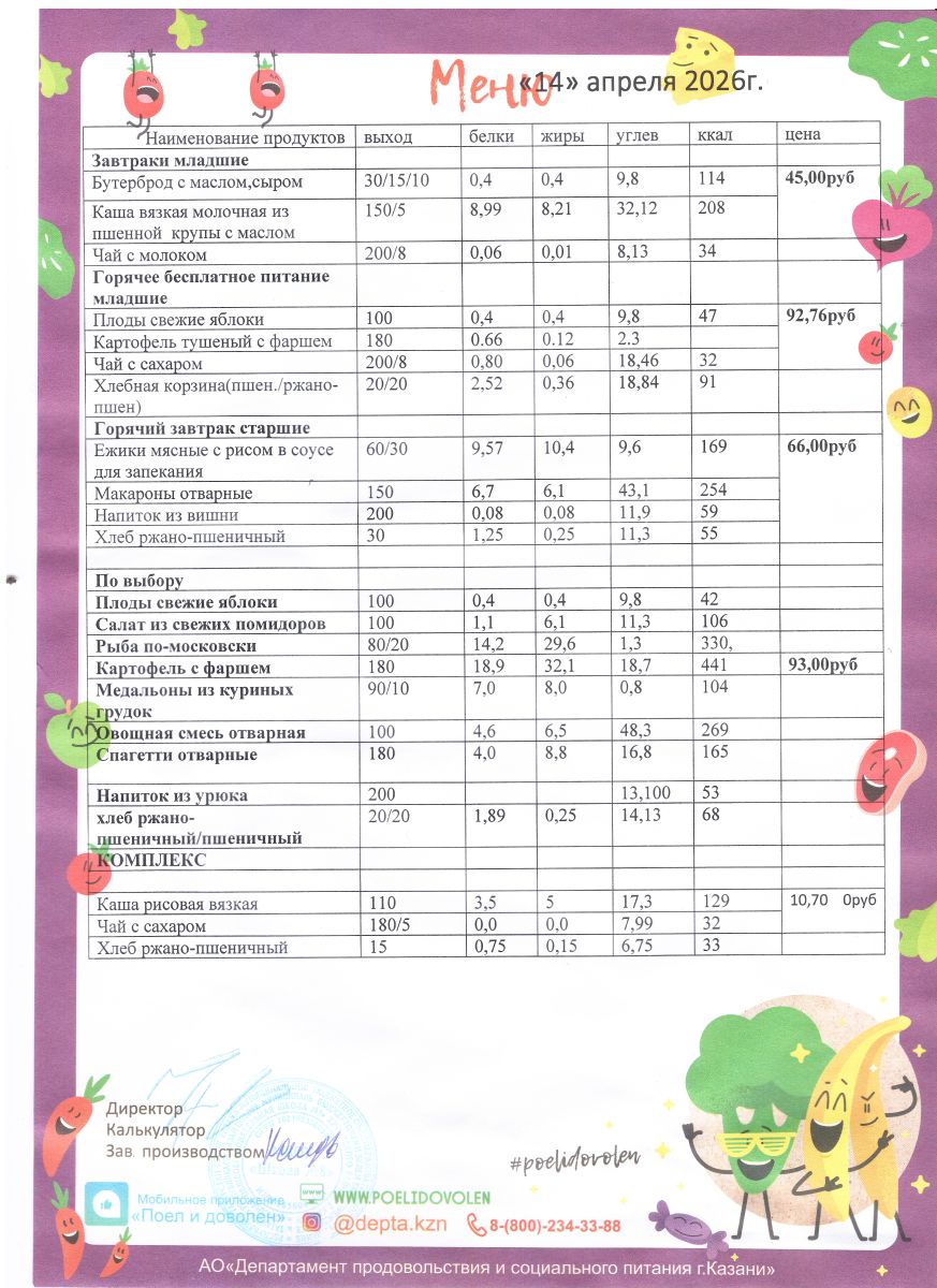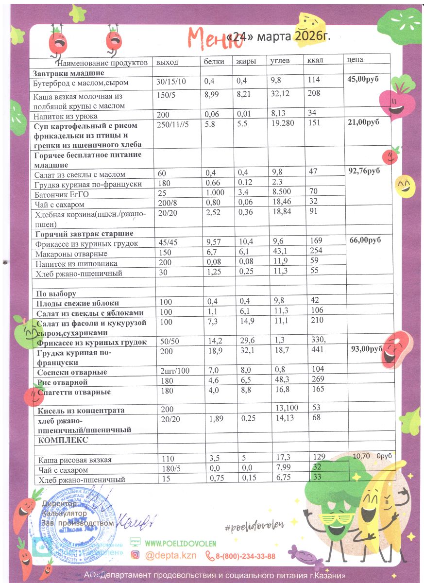 Меню 1 - 11 классы на 2023 - 2024 учебный год