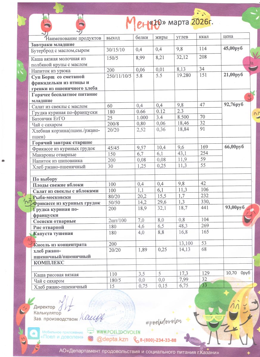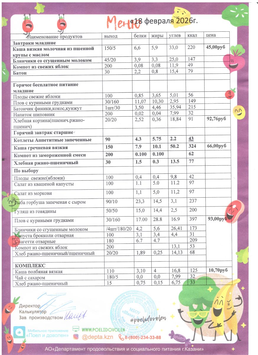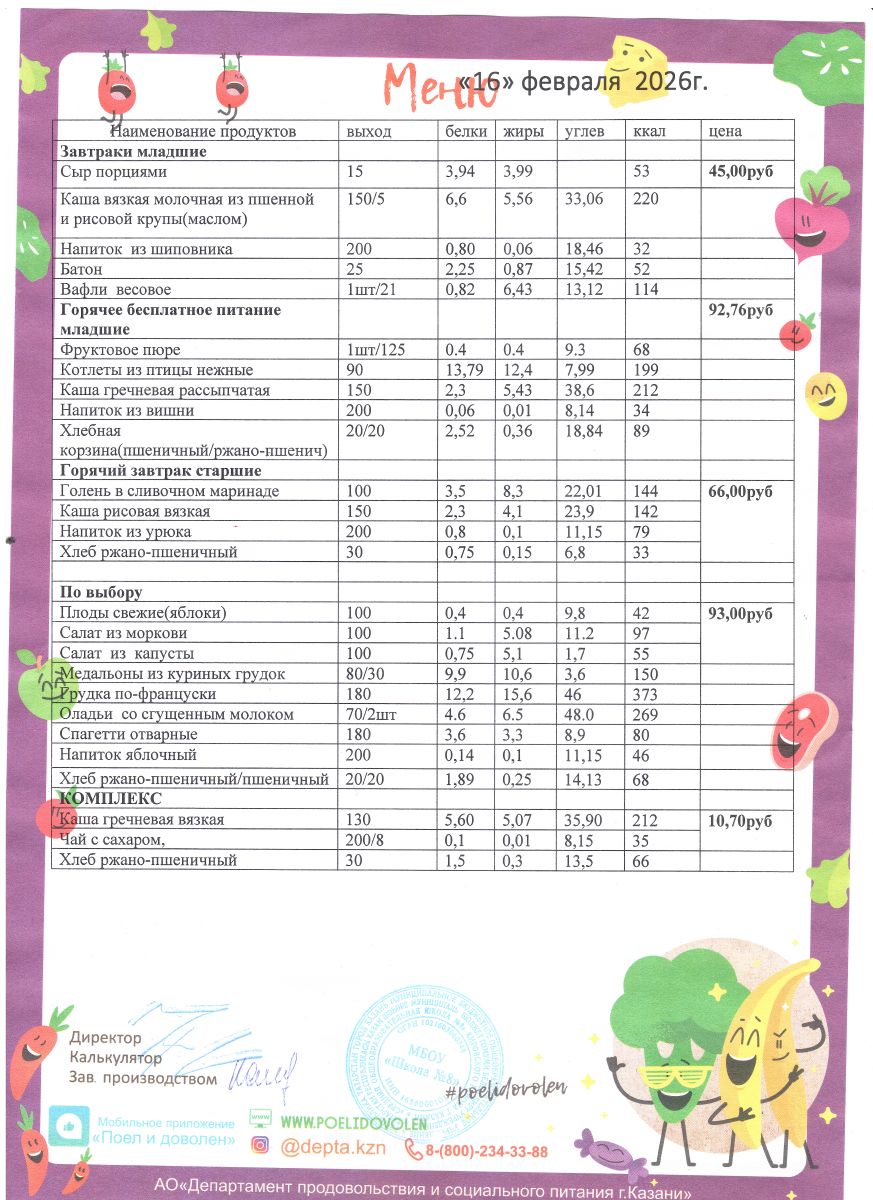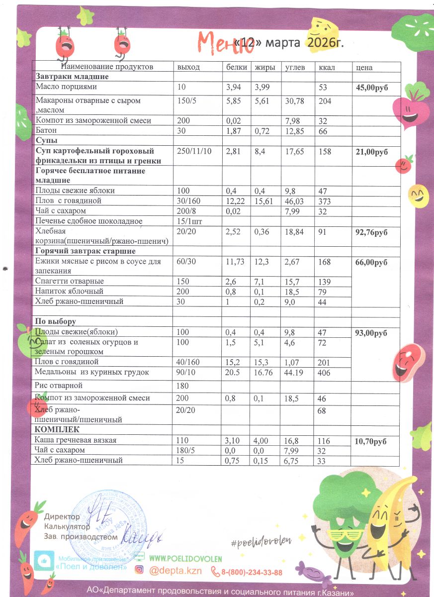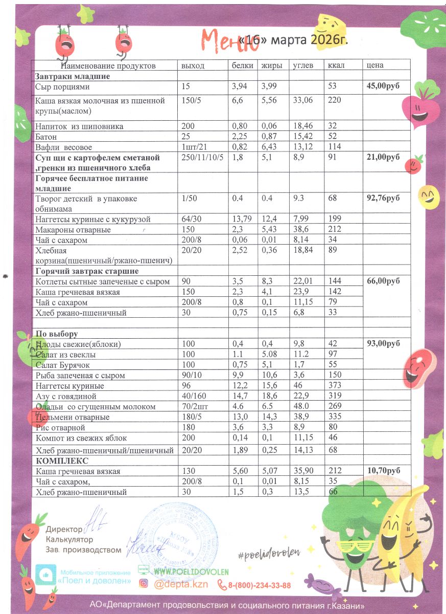 Меню 1 - 11 классы на 2023 - 2024 учебный год
