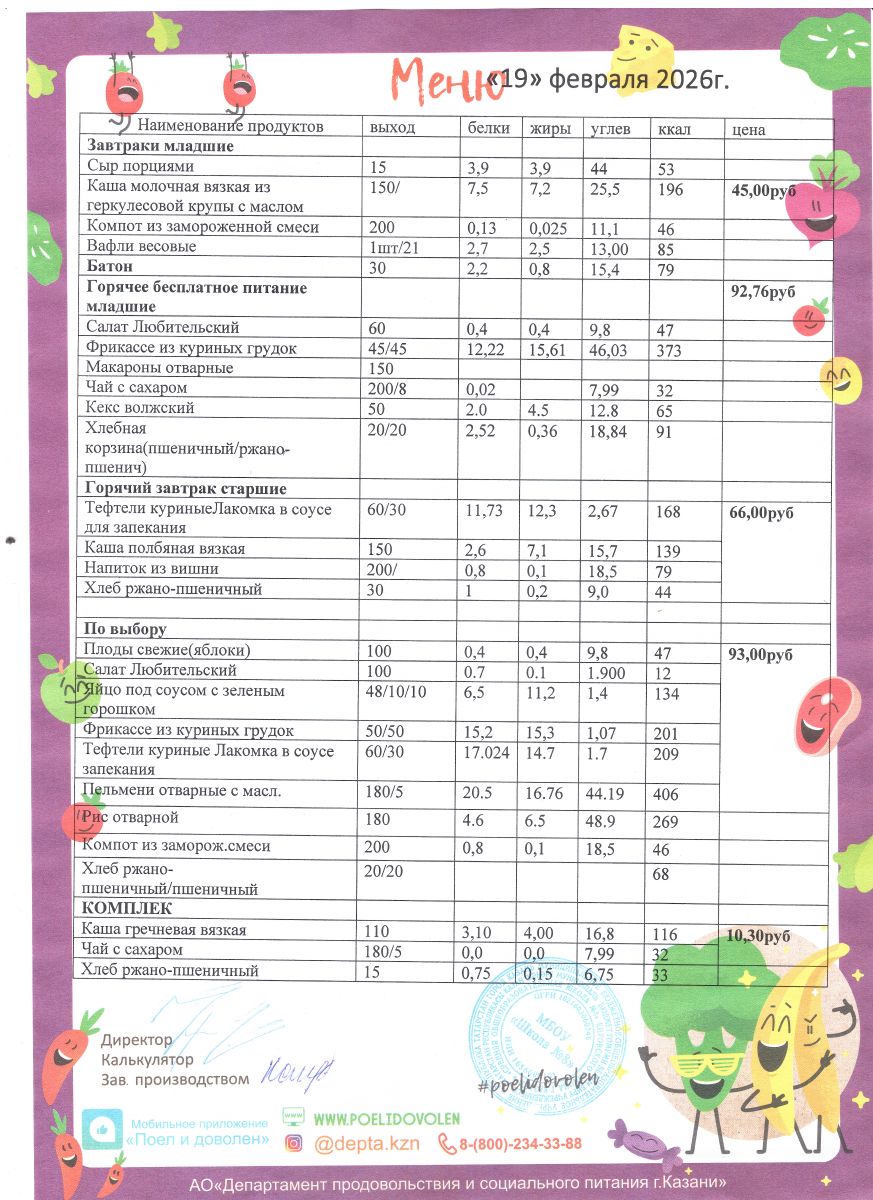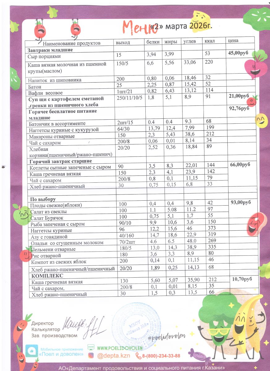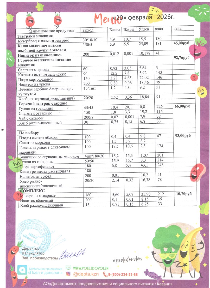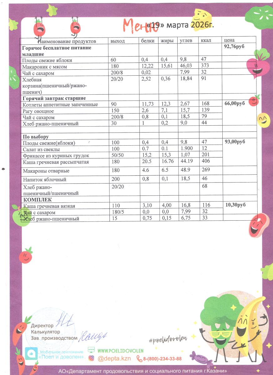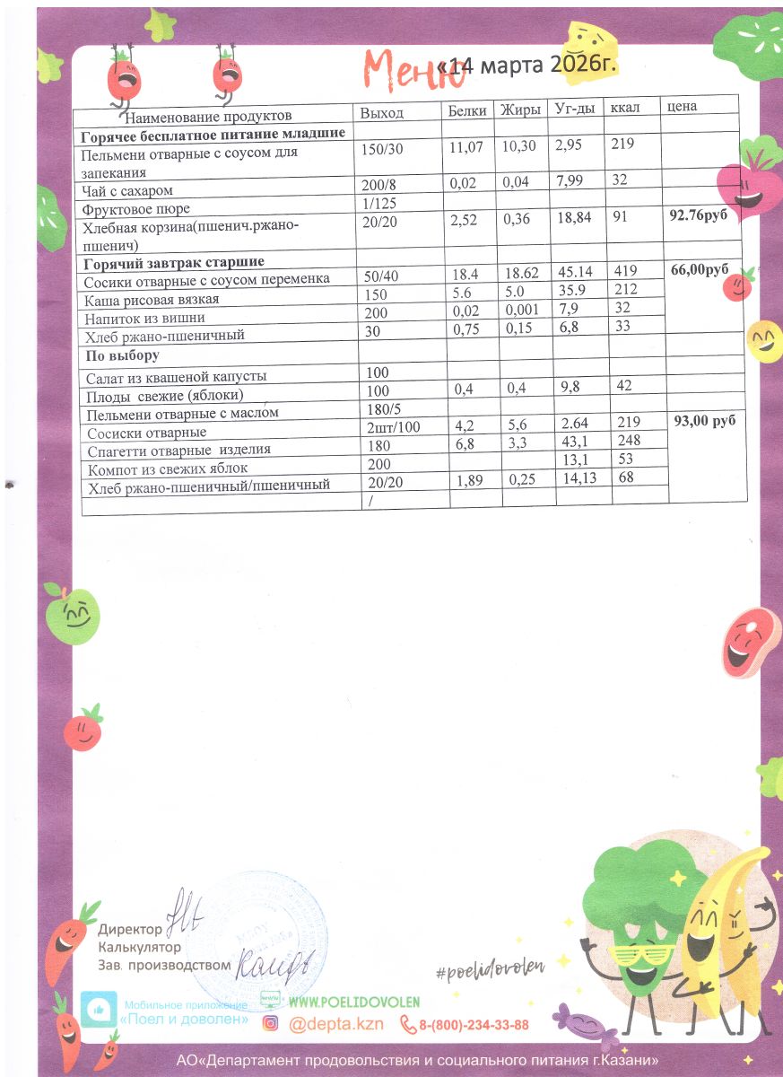 Меню 1 - 11 классы на 2023 - 2024 учебный год