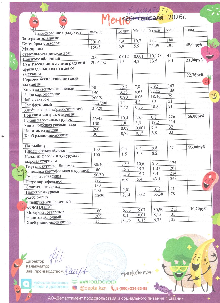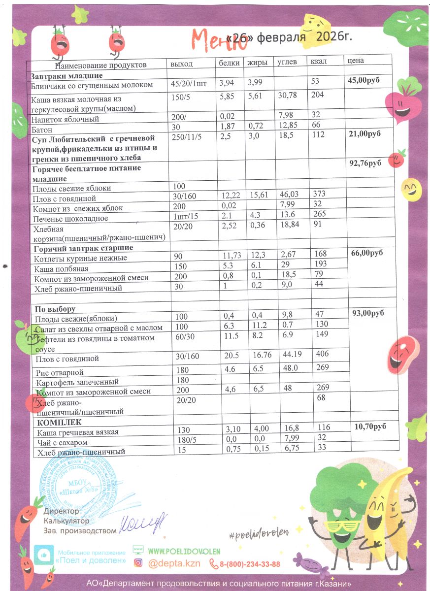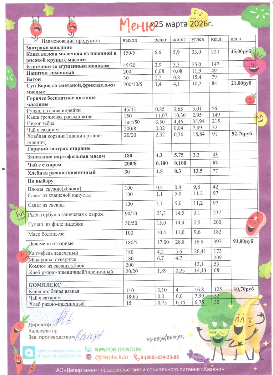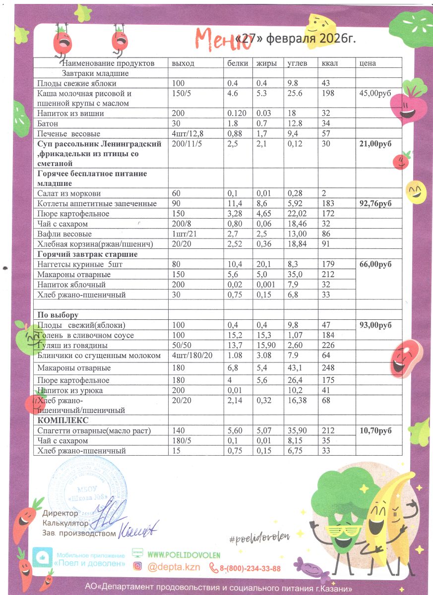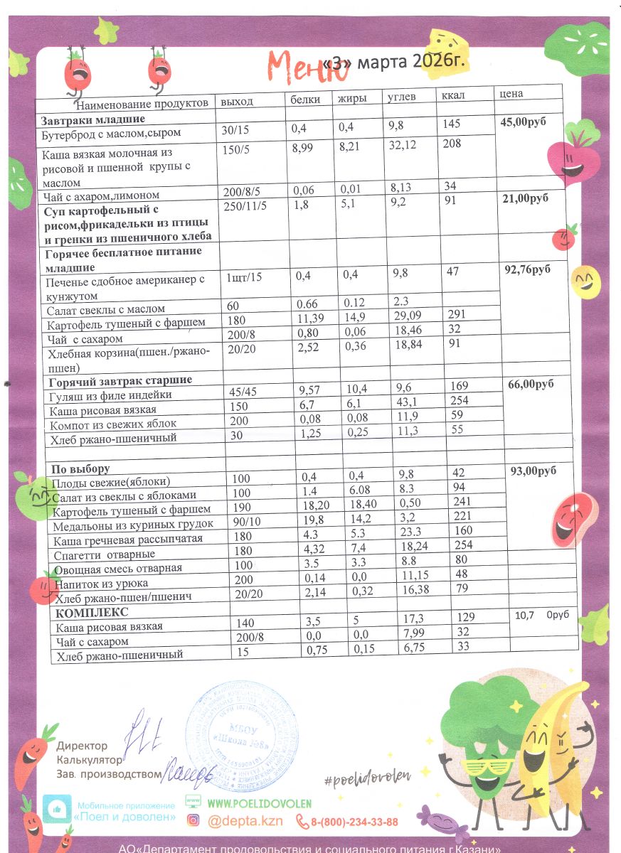 Меню 1 - 11 классы на 2023 - 2024 учебный год