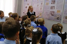 Активисты ДОО КОПИ Провели урок-экскурсию для учеников начальной школы в нашем музее Н.Г.Столярова. Ребят познакомили с биографией героя и с военной историей школы.