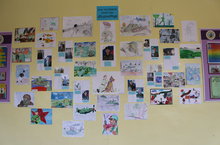 На третьем этаже школы расположена выставка фото и рисунков учеников 1- 11 классов. На фотографиях папы и братья, дяди и друзья родителей учеников, которые служили в армии. На рисунках изображена служба в мирное время, какая бы разная она не была. Кто то служил в Афгане и изобразил именно его, кто то в Чечне, а кто то в Москве. Разные судьбы у этих мужчин, но все они наследники Великой Победы.