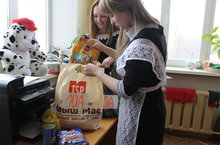 1-4 классы школы собрали корм для приюта бездомных собак.