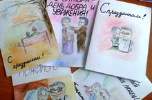 Ребята из начальной школы вместе с классными руководителями изготовили открытки для бабушек и дедушек.