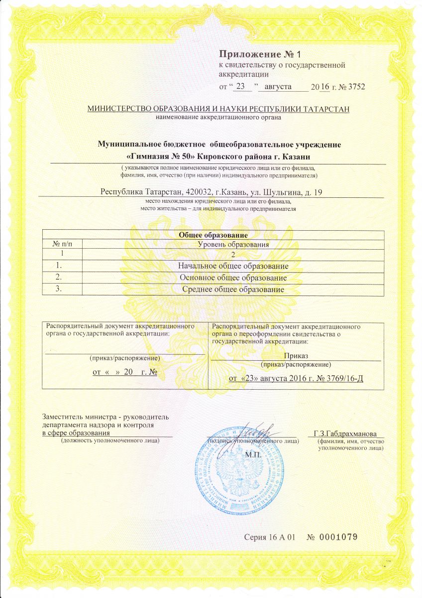 Короткое название: МБОУ "Гимназия № 50" Кировского района г.Казани