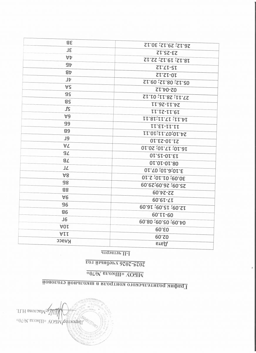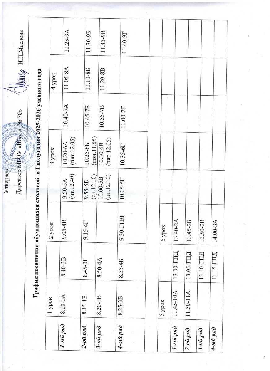 График посещения обучающихся столовой в 2025-2026 учебного года