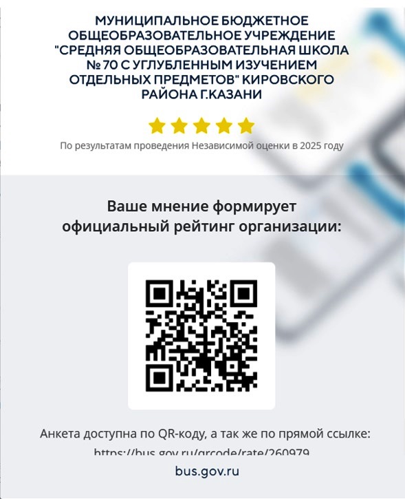 QR-код Муниципальное бюджетное общеобразовательное учреждение "Средняя общеобразовательная школа № 70 с углубленным изучением отдельных предметов" Кировского района г.Казани