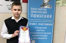 Победа в конференции имени К.Д.Ушинского. 29.11.2017 Обучающиеся школы приняли участие в X городской научно-исследовательской конференции имени К.Д.Ушинского.Ребята защищали свои работы, которые были высоко оценены жюри.Ученик 7 класса получил диплом первой степени. Поздравляем!!!