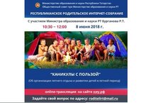 «Республиканское родительское интернет-собрание» по актуальным вопросам организации летнего отдыха и развития детей в летний период "Каникулы с пользой" Подключайтесь и задавайте свои вопросы специалистам! -