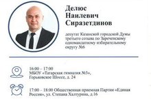 Приглашаем вас 10 ноября 2017 года с 16.00 до 17.00 часов на приём населения депутата Казанской городской Думы Серазетдинова Делюса Наилевича. Подробнее на сайте SDELUS.RU