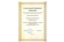 Управление образования ИКМО г.Казани наградило директора нашей школы Юсупову Лилию Рашидовну Благодарственным письмом за активное участие педагогического коллектива школы в городском празднике "Литературные дворики - 2017".