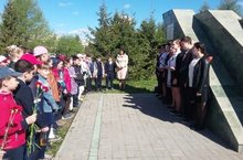 Учащиеся школы приняли участие в митинге, посвящённом 72-й годовщине Победы в Великой Отечественной войне у стеллы Фарида Яруллина