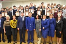 Сегодня в нашей школе состоялось награждение победителей районного конкурса "Роль прокурора в обществе". Прокурор Кировского района старший советник юстиции Вахитов Равиль Ринатович, заместитель прокурора Кировского района г.Казани советник юстиции Белова Светлана Владимировна и помощник прокурора Кировского района г.Казани юрист 1 класса Мингалимова Марьям Фердинандовна наградили ребят ценными подарками и пожелали успехов и побед.