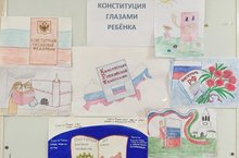 В школе прошел конкурс рисуноков "Конституция глазами ребенка". Ученики школы нарисовали рисунки и создали стенд.