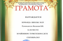 Поздравляем команду школы, занявшую III место на районном туристическом слёте.