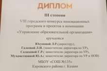 Муниципальное бюджетное общеобразовательное учреждение "Средняя общеобразовательная школа №135 с углубленным изучением отдельных предметов" Кировского района г. Казани