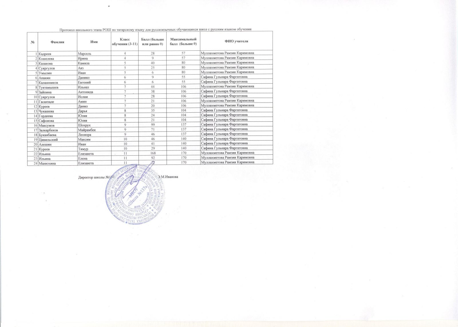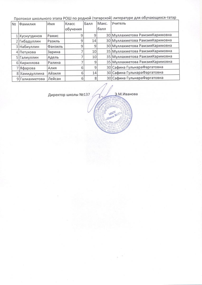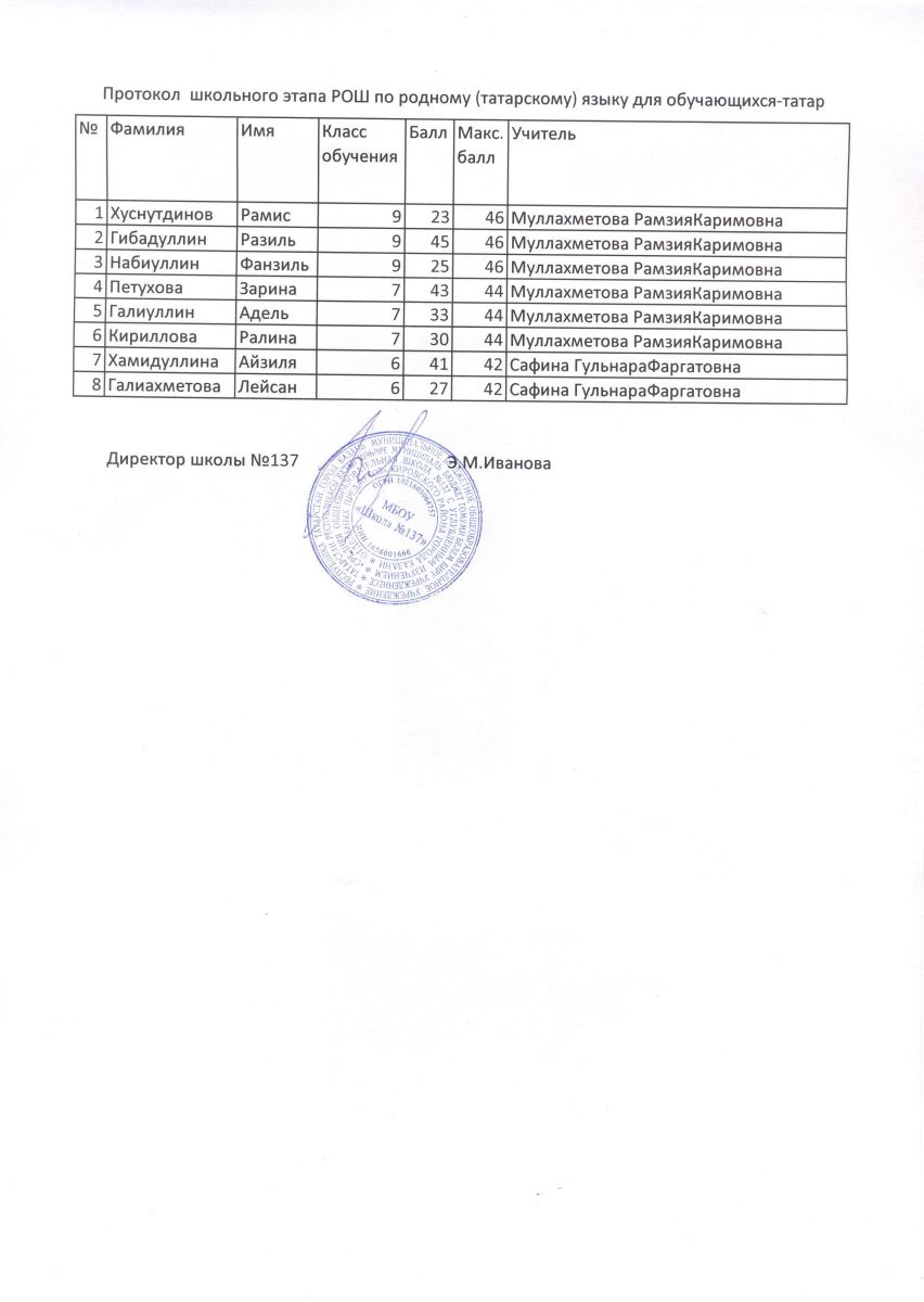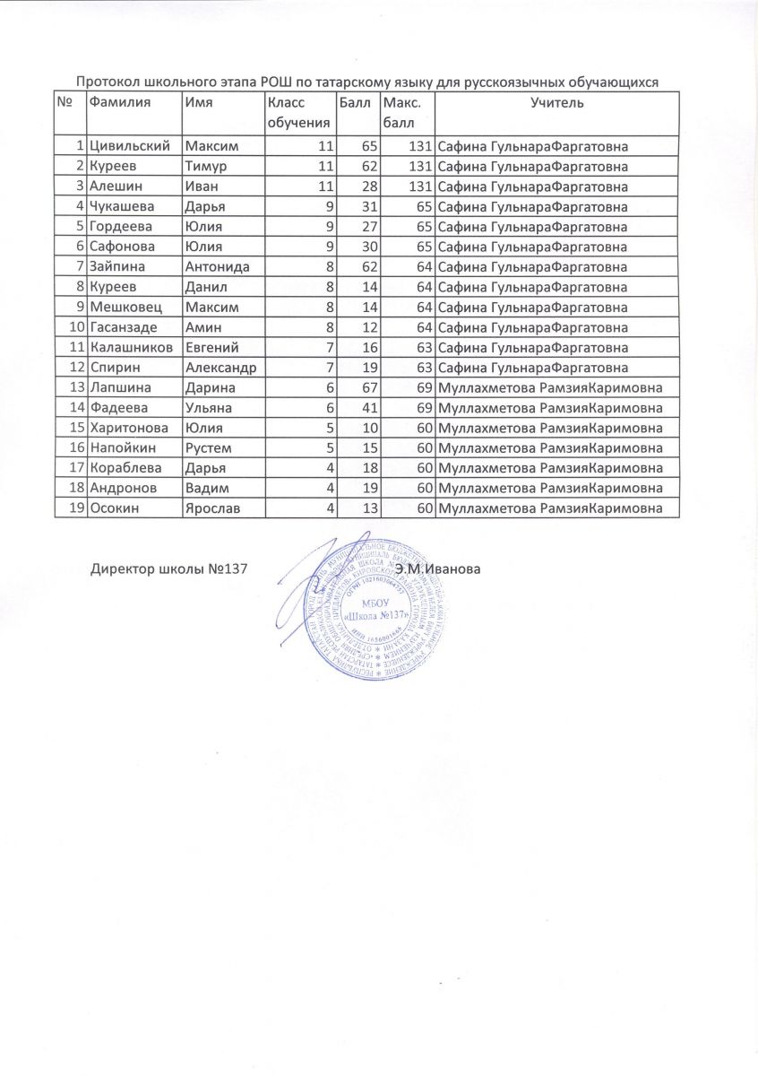 Протокол школьного этапа РОШ по