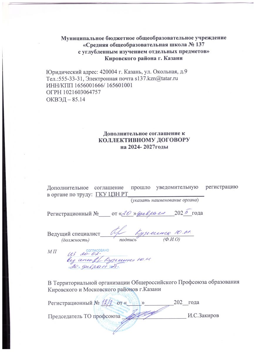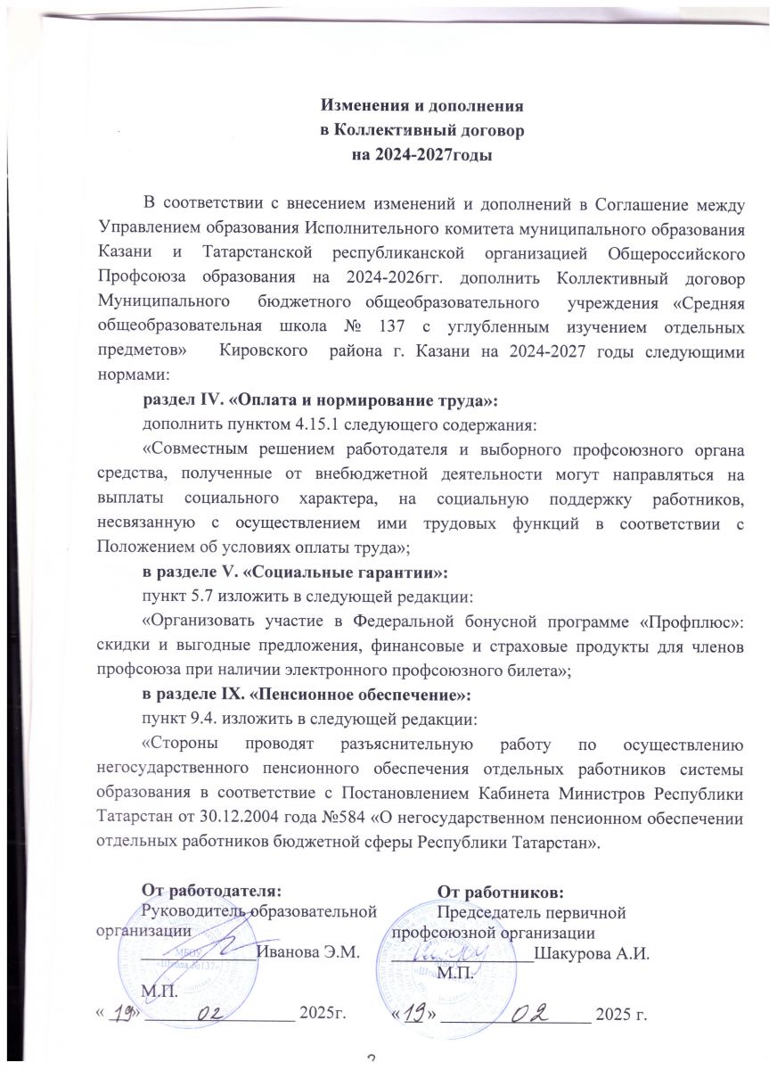 Изменения и дополнения в коллективный договор на 2024-2027 гг.