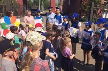 Акция «Ребёнок - главный пассажир» в рамках 1-го этапа Всероссийской операции «Внимание-дети!». Участники- отряд ЮИД «Зелёный свет» гимназии, воспитанники детских садов №252 и №178. Знаем правила движения как таблицу умножения!!! 17.05.2018