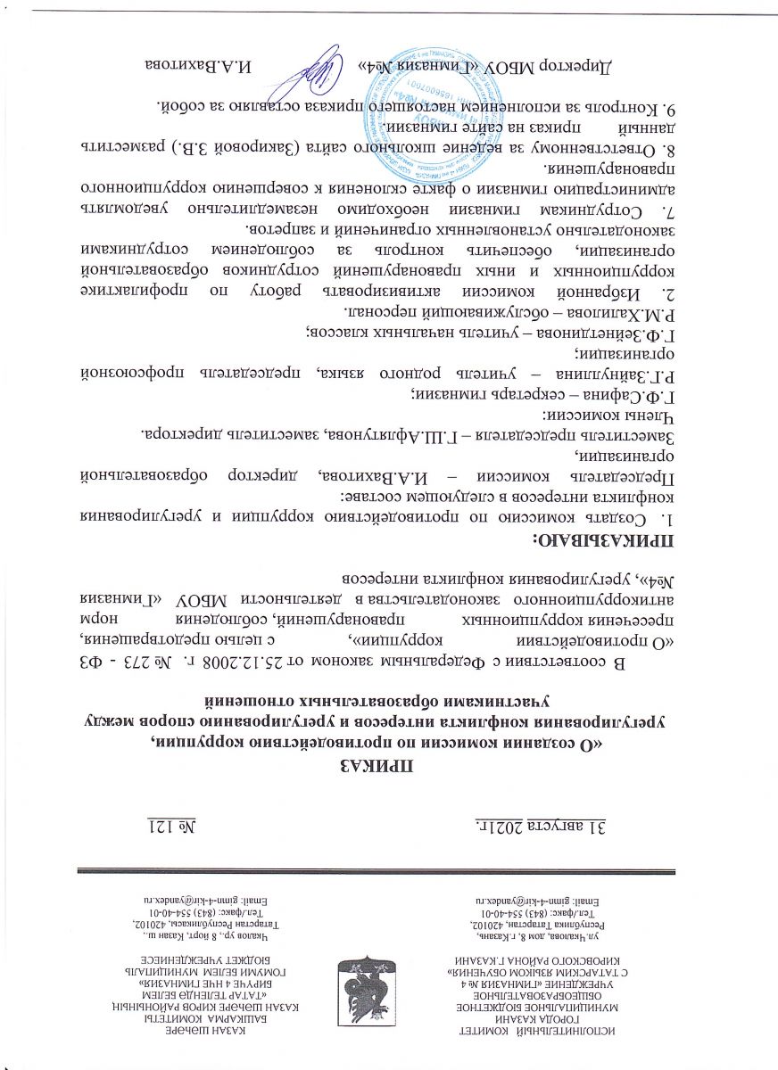 Приказ об организации антикоррупционной деятельности СКАЧАТЬ