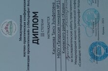 Позравляем призера Международной научно-практической конференции "Созвездие просветителей" Касимову Тансу. Педагог Ахметзянова Д.Р.
