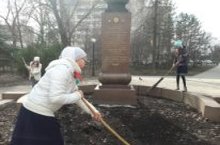 ГИМНАЗИЯ УКУЧЫЛАРЫ "ЧИСТА СКВЕР" АКЦИЯСЕНДӘ КАТНАШТЫЛАР. ИКЕЛӘТӘ СОВЕТЛАР СОЮЗЫ ГЕРОЕ ҺӘЙКӘЛ ТЕРРОТИРЯСЕН ҖЫЕШТЫРДЫЛАР.