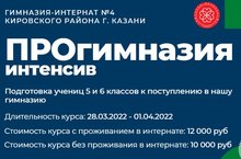 Мы рады сообщить Вам, что на весенних каникулах c 28 марта по 1 апреля 2022 года в гимназии-интернате №4 г. Казани будет работать ПРОгимназия-интенсив для девочек! На курсы приглашаются ученицы 5 и 6 классов, планирующие поступить к нам в этом году