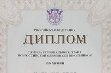 Призовое место на региональном этапе всероссийской олимпиады по химии 22.01.2021