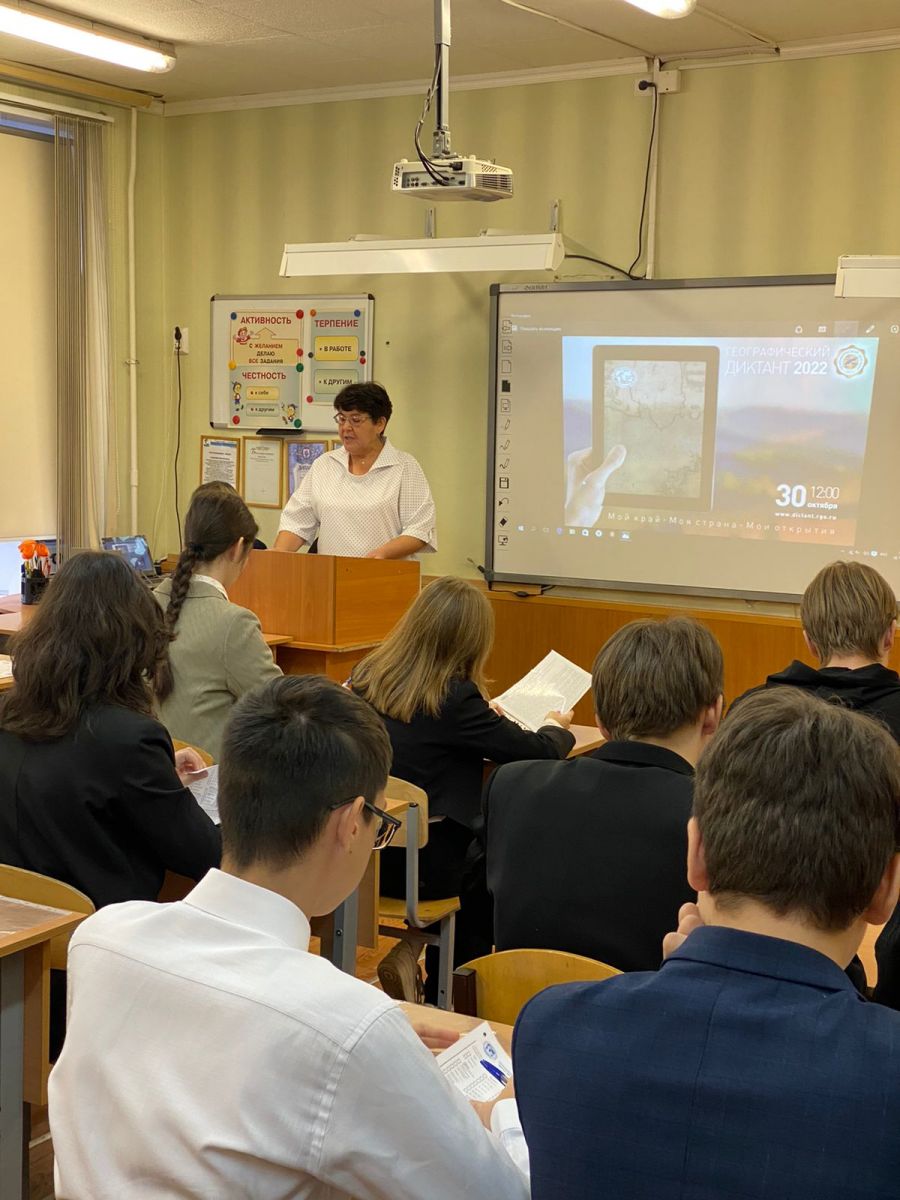 Опубликовано: 30.10.2022Акция прошла в общеобразовательных организациях Кировского и Московского района. Площадку на базе МБОУ "Гимназия №9" посетили гости из Министерства образования и науки Республики Татарстан Алексеева Т.Г. и Афанасьева Г.К и СМИ. Учащиеся 8 - 11 классов написали диктант и продемонстрировали свои знания. Основная цель мероприятия - популяризация географических знаний и повышение интереса к школьному предмету.