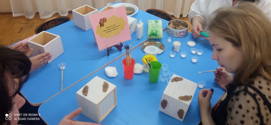 Опубликовано: 27.04.202327.04.2023 воспитатели Кировского и Московского районов получили массу положительных эмоций от созидательной, творческой деятельности на семинаре - практикуме по направлению "Художественно- эстетическое развитие". Своим опытом работы поделился МАДОУ " Детский сад 403 комбинированного вида с татарским языком воспитания и обучения" Московского района г. Казани. Педагогам были представлены интересные техники и новые художественные материалы, которые можно успешно использовать в работе с детьми дошкольного возраста. Техники: "Дудлинг", "Прозрачный мольберь", " Шренка", "Молдан" и др. Обмен педагогическим опытом обогащает работу воспитателя новыми идеями, даёт возможность творческого самовыражения, помогает по новому посмотреть на воспитательно- образовательный процесс.