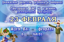 Приглашаем ВАС на утренник, посвященный Дню защитника Отечества!