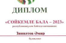 Зиннәтов Әмир татар телендә матур сөйләшә, төрле бәйгеләрдә җиңүләр яулый. Бу җиңуе республика күләмендә үткәрелгән "Сөйкемле бала" бәйгесендә булды. Горурланабыз!