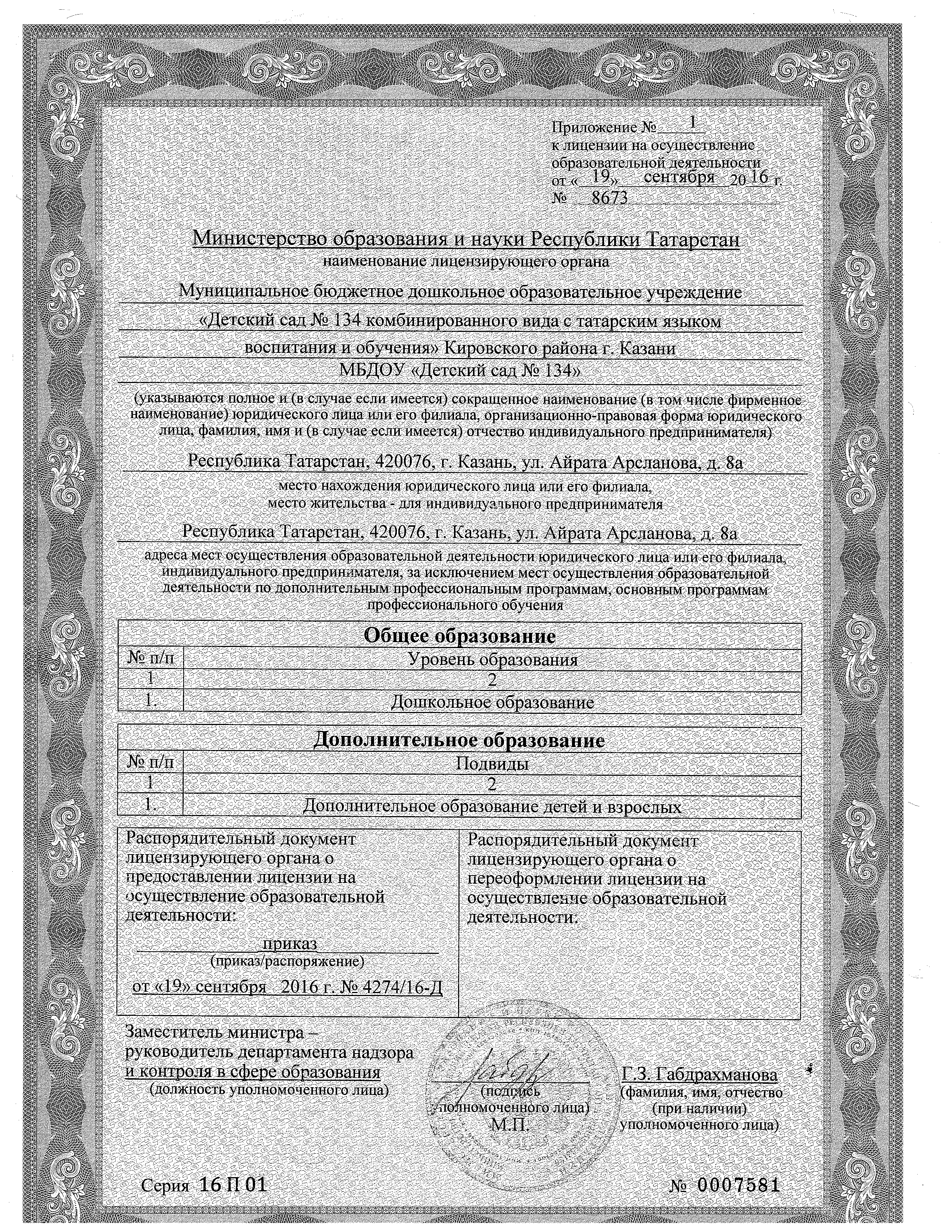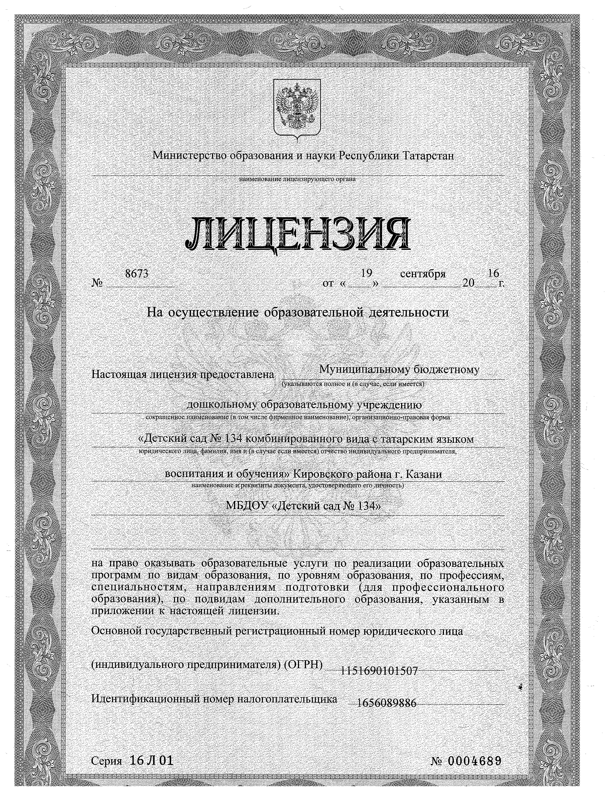 Муниципальное бюджетное дошкольное образовательное учреждение «Детский сад № 134 комбинированного вида с татарским языком воспитания и обучения» Кировского района г. Казани