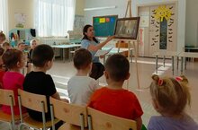 В рамках работы Федеральной инновационной площадки «Картинная галерея в детском саду» в нашем детском саду прошел методический час «Формирование ценностного отношения воспитанников к произведениям шедевров Третьяковки». Воспитатели Арсланова Г.И. и Ефимова А.Ю. поделились знаниями, полученными в рамках курсов повышения квалификации «Организация Галереи в ДОО для решения задач художественно-эстетического и познавательного развития детей на основе интегративного подхода». Педагоги получили теоретические и практические знания по игровым технологиям, направленным на знакомство дошкольников с произведениями русских художников.