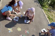 Летом мы много времени проводим на прогулке. Наши воспитанники каждый день наблюдают за природой и она их вдохновляет. Сегодня мы раздали трафареты и ничего не объясняли детям. Каждый ребенок сам решал как его использовать. Посмотрите, что из этого получилось.