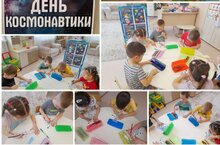 И в нашем детском саду в этот день в группах проходили тематические занятия. Воспитанники знакомились с историей освоения космоса, беседовали о первом полете человека в космос, узнали много новых профессий, связанных с космонавтикой и получили большой заряд положительных эмоций.