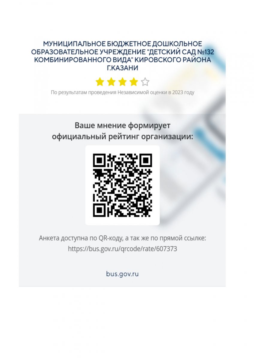 Уважаемые родители! Вы можете оставить мнение о нашей организации. Чтобы оценить условия осуществления образовательной деятельности, и наведите камеру Вашего телефона и отсканируйте QR-код. Перейдя по ссылке Вы смотете:1) Оценить условия осуществления образовательной деятельности: открытость и доступность информации об организации; комфортность условий осуществления образовательной деятельности; доброжелательность и вежливость работников.