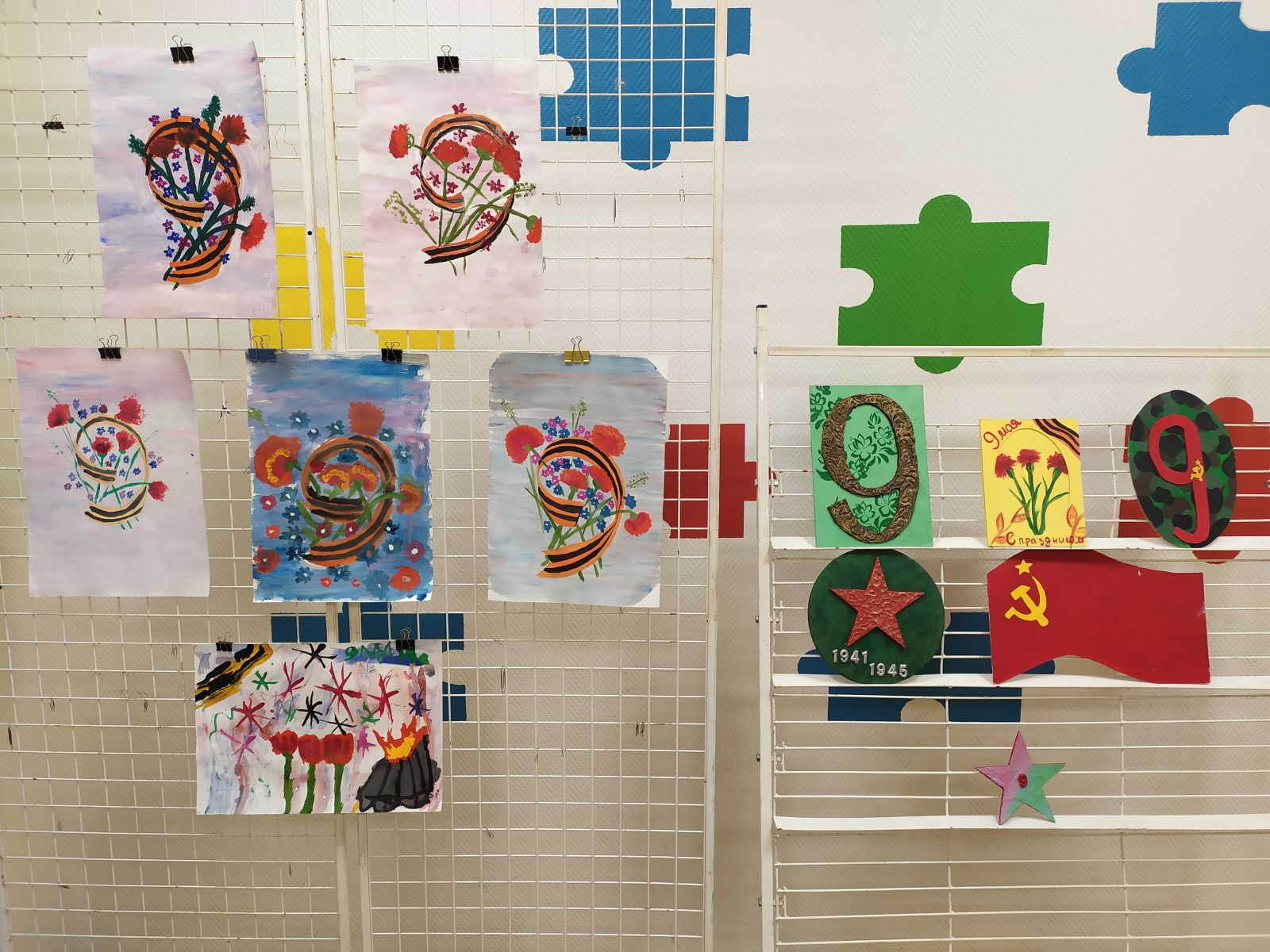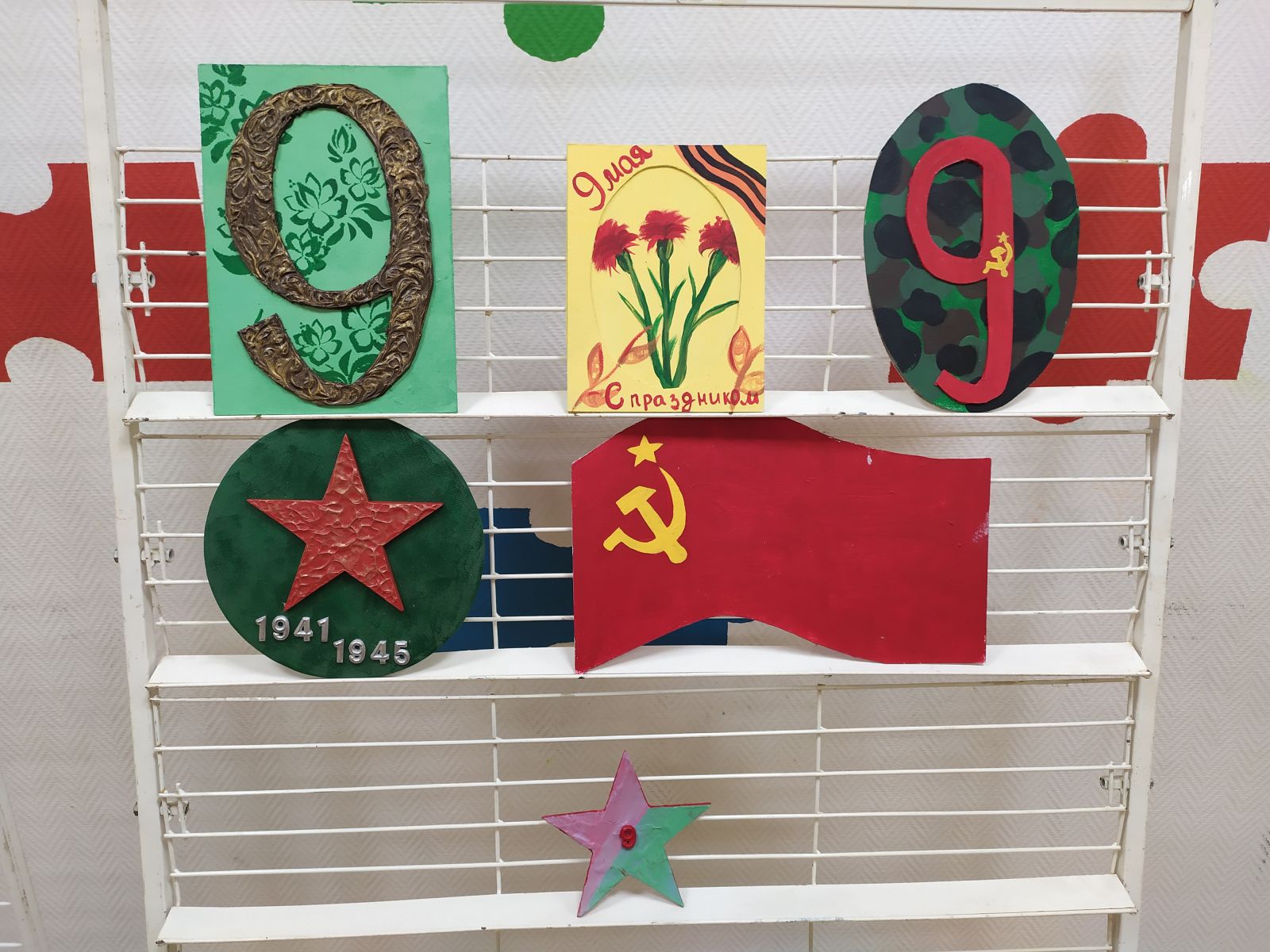 Выставка «Победный май» в клубе Полёт. Работы изготовили учащиеся объединений «Волшебный декор» и «Волшебные краски».