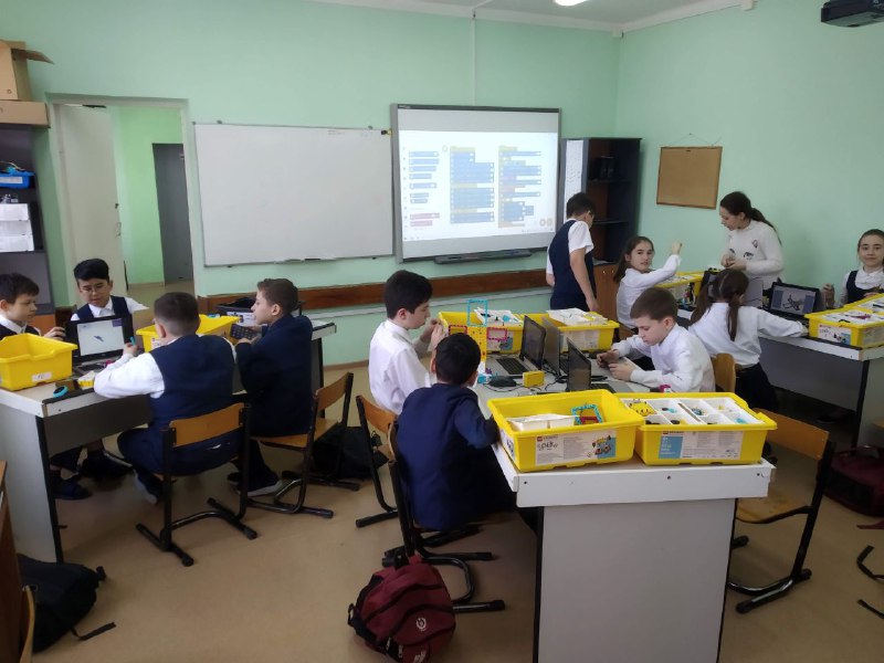 В объединении Робототехника на базе 15 гимназии, педагог Нуризянов Э.Т. прошло открытое занятие на тему "Езда по траектории". Ребята закрепили умения строить модели роботов и работу с датчиком освещенности. Составили алгоритм для движения робота по траектории с двумя датчиками освещенности.